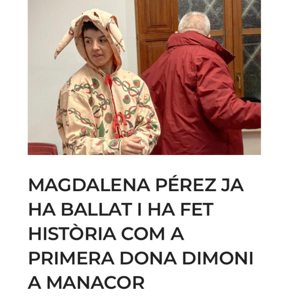 Un vídeo de Sant Antoni del 1976 va ser la 13a notícia més llegida. La 14a, però, va ser la notícia fresca que Magdalena Pérez ja s’havia convertit en la primera dona de la història que es posava dins el vestit d’un dimoni per Sant Antoni. Va ser el dia del primer ball. Enguany, més.
