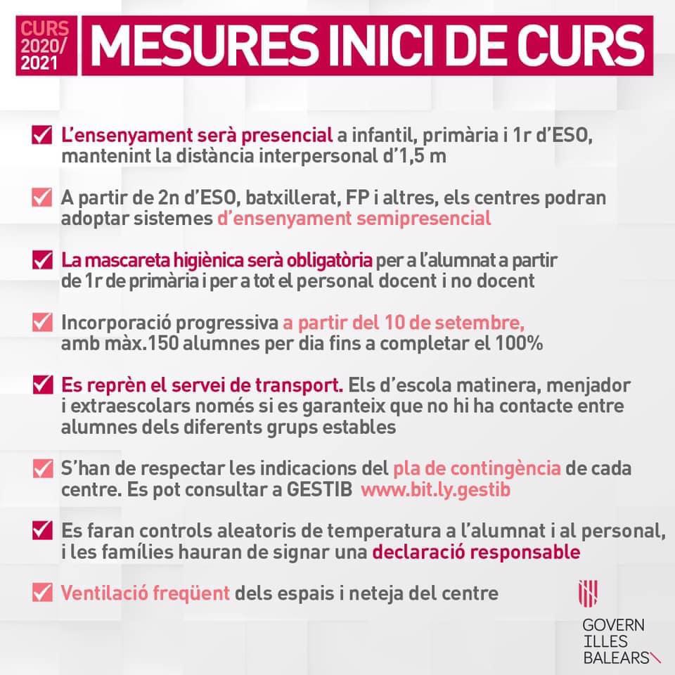Després d’escoltar la roda de premsa del Conseller d’Educació de les Illes Balears, sabem que a partir del proper dia 10 de setembre començam el nou curs escolar 2020/2021, però es comença amb un escenari diferent del que tal vegada ens pensàvem.