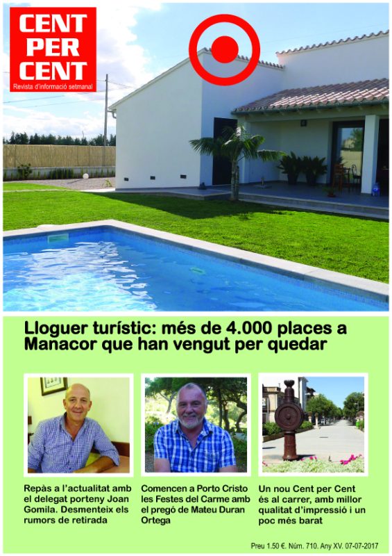 4.000 places de lloguer turístic es constituïen a Manacor per executar la “democratització” de la gallina dels ous d’or de Mallorca. Joan Gomila desmentia els rumors de retirada just abans de les festes de Porto Cristo. Cent per Cent iniciava una nova era, més ben imprès i amb una nova imatge.