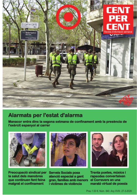 En el nostre passat recentíssim hi ha la pandèmia de la Covid-19, esdevinguda assumpte d’estat. Tant que dugué l’exèrcit espanyol a tutelar les “dolenties” de la gent manacorina. Mentre els manobres continuaven fent feina i Serveis Socials mirava de donar una mà als qui no en podien fer, la poesia obria finestres de bellesa i esperança.