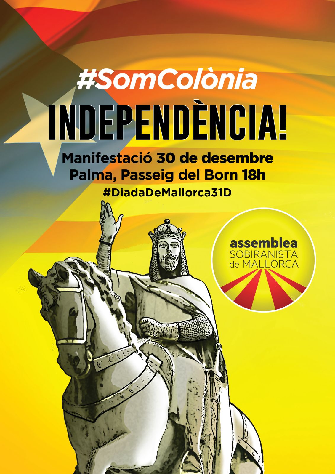 L’Assemblea Sobiranista de Mallorca convoca la ciutadania un any més a la manifestació de la Diada de Mallorca del proper 30 de desembre, que començarà a les 18 hores a la Plaça del Born de Palma.