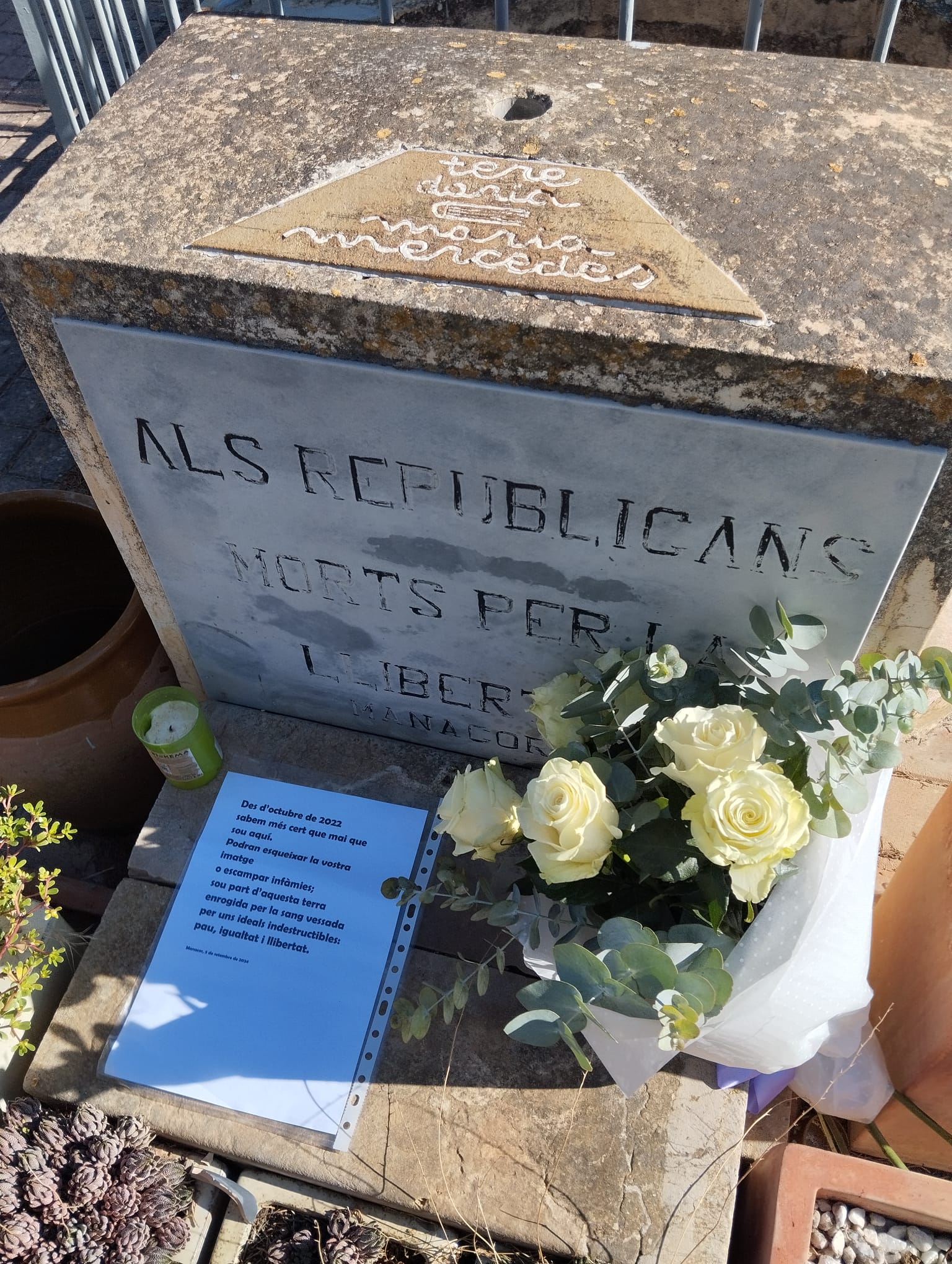 El Col·lectiu de les Dones de Llevant ha visitat avui el cementiri de Manacor per tal de recordar les cinc milicianes mortes a Manacor el 5 de setembre de 1936. Tal dia com avui fa 88 anys d’aquest assassinat i el Col·lectiu, com cada any, les han volgut recordar. Així mateix, han tengut al record l’enyorada Antònia Matamalas, qui va ser fundadora del col·lectiu, que ens va deixar el passat mes de gener i que per primera vegada no ha estat present en l’acte d’homenatge.