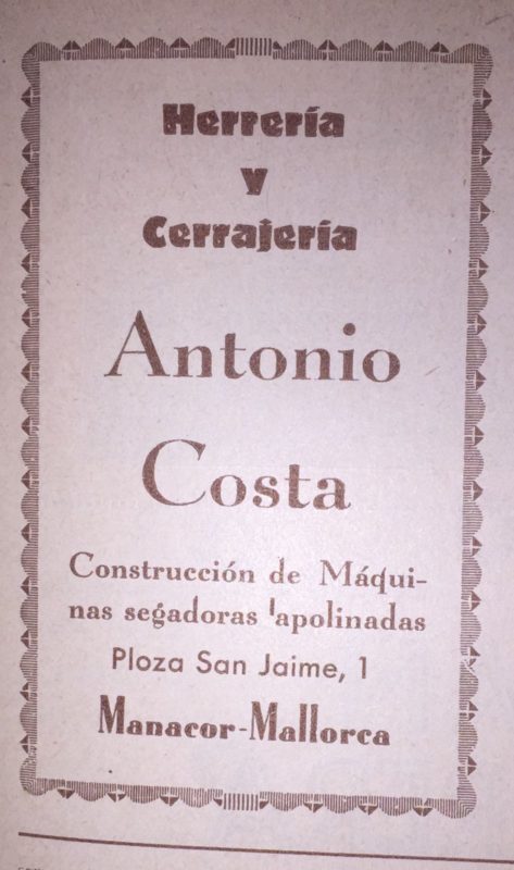 En una guia comercial del 1890 apareixen un total de 14 tallers i en una altra del 1933 n’hi havia 7 (a nom de Joan Fullana, Nofre Gelabert, Bartomeu Oliver, Antoni Riera, Bernat Vadell i Antoni Vadell, Aquest darrer considerat una serralleria artística). També hi havia un magatzem de ferros de Miquel Riera Billoch.