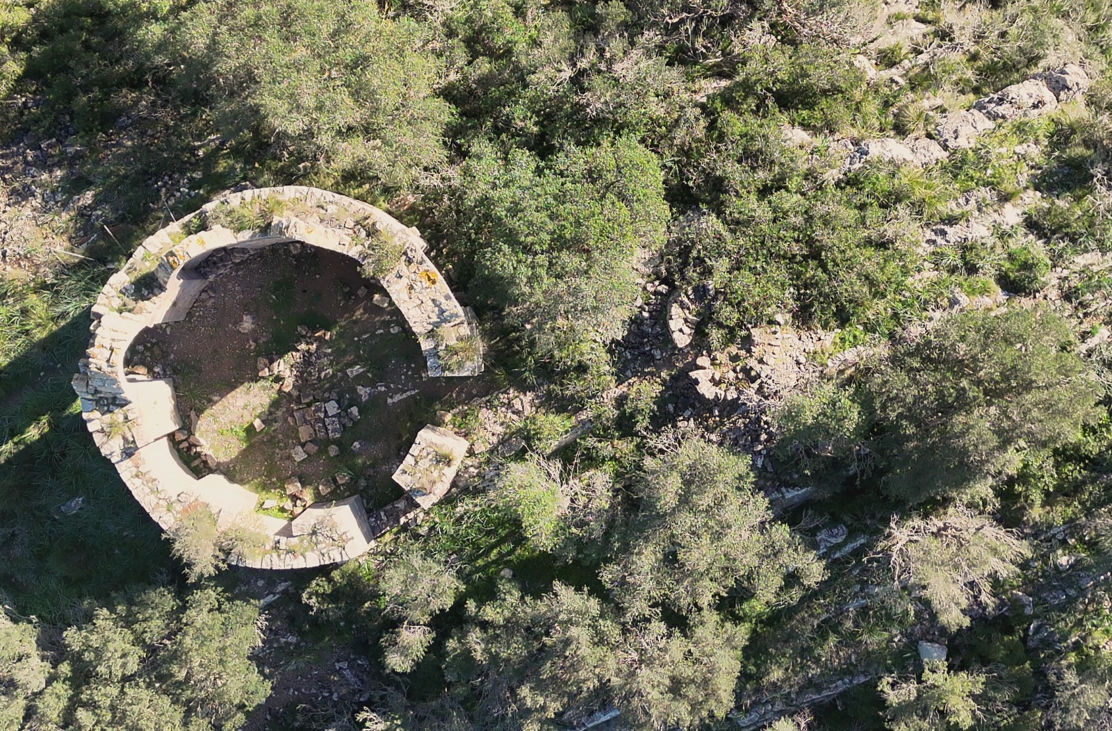 D’altra banda, la plataforma també ha rebut imatges aèries preses pel pilot de drons Christian Volker on es poden destriar les restes d’un altre oratori, anterior al que podem veure avui a simple vista, i que dataria, aproximadament del 1880. Aquesta seria una prova fefaent de l’existència de construccions en aquesta elevació i per tant de la peregrinació que des de fa un segle i mig com a mínim han fet els manacorins en aquest emblemàtic indret del municipi.