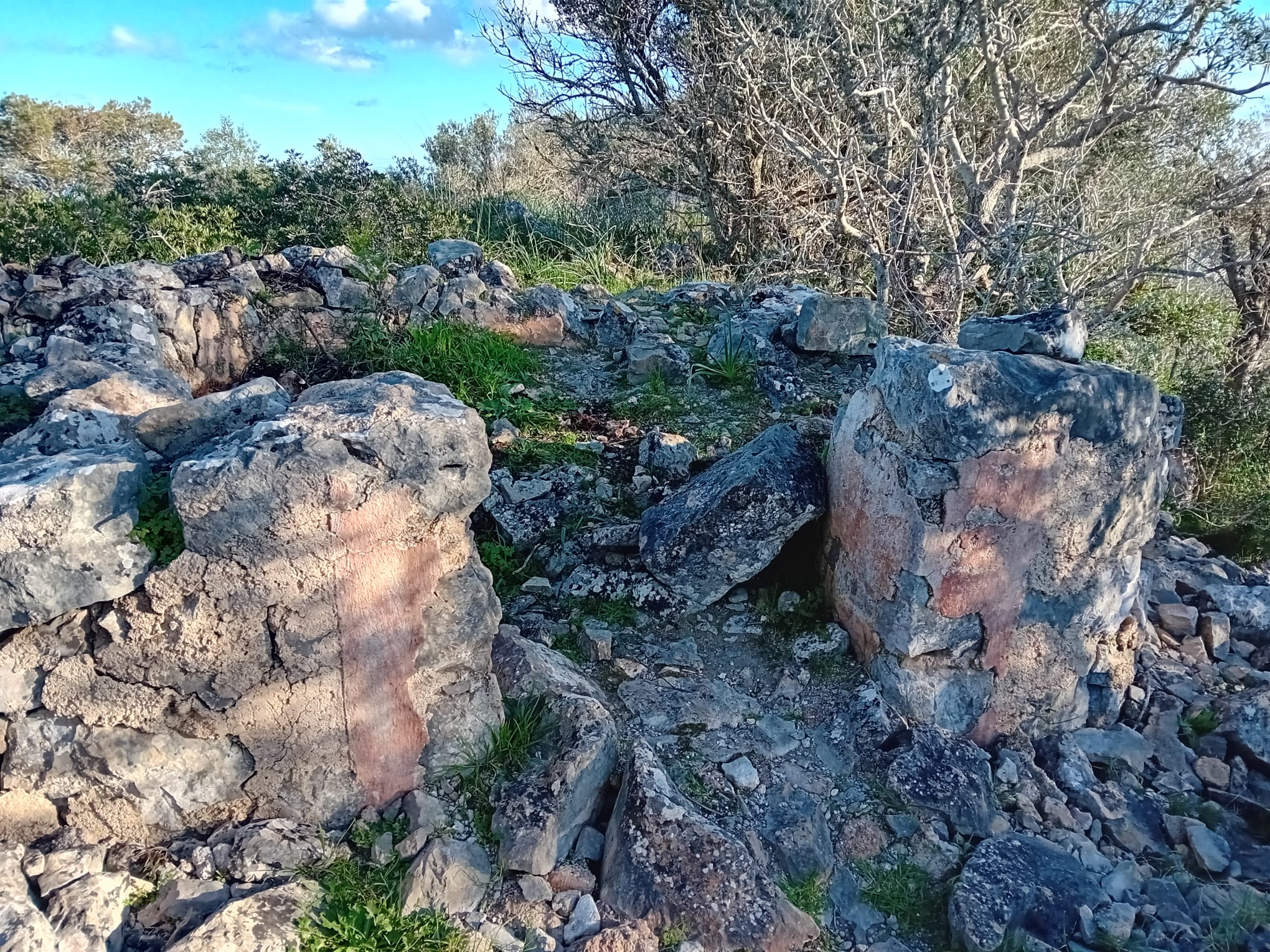 Just aquí baix es poden veure les restes d’aquest antic oratori. A la imatge superior es veuen unes pedres en disposició circular a la dreta de l’oratori actual.