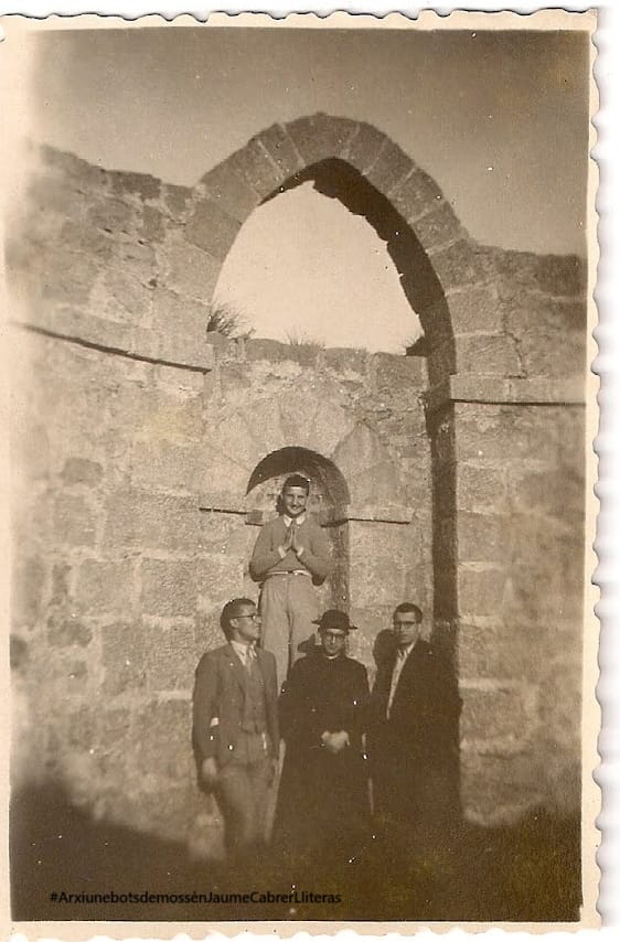 Aquesta és una de les primeres imatges fruit d’aquesta tasca de recerca i recopilació per part de la Plataforma Camins Públics i Oberts, i pertany a l’arxiu dels nebots de mossèn Jaume Cabrer Lliteras. La imatge es dataria a l’entorn del 1947. Hi surten el mateix Jaume Cabrer i Miquel Vallespir Riera. Qui està dins el fornicle amb les mans juntes, és don Tomàs Riera.