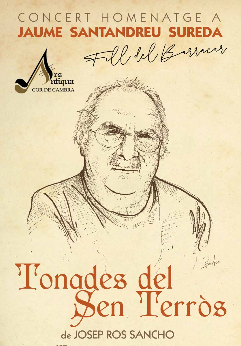 “Fa deu anys que Pep Ros ja va agafar sis poesies de Nissaga de sen i els va escriure una música per fer les Tonades del sen Terròs”. Això explica Petra Riera, presidenta d’Ars Antiqua quan li demanam pels motius d’aquest homenatge aparentment sobtat a Jaume Santandreu. Aparentment perquè de fet l’acte havia de tenir lloc el mes de gener, però hagué de ser postposat per motius pandèmics, i també aparentment perquè, com ja s’ha dit, la cosa ja ve de molt enrere.