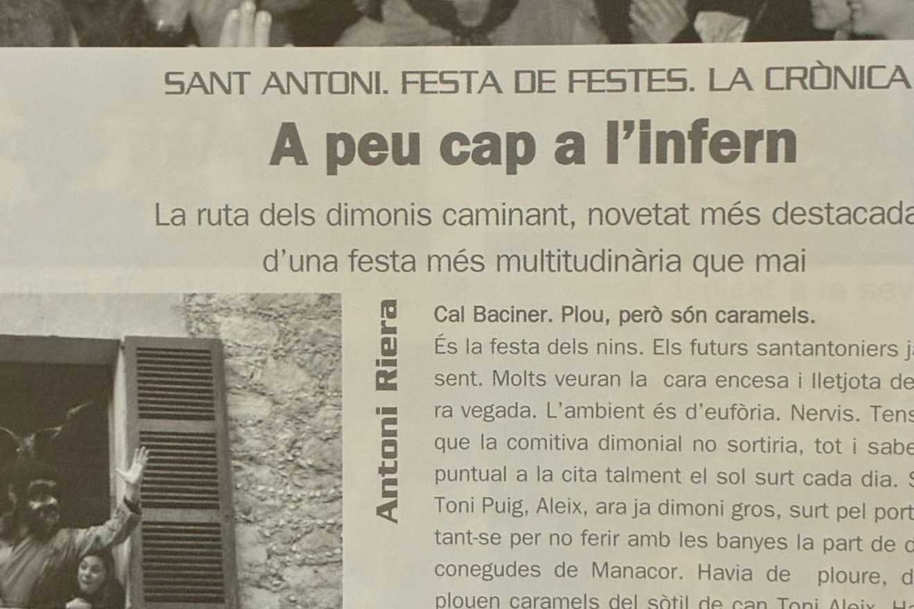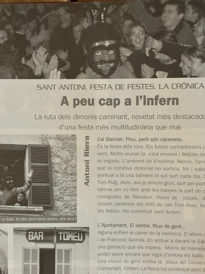 La mort de Miquel Riera va arribar a final de mes i per tant no va endolar les festes de Sant Antoni, que tengueren lloc una setmana abans de l’òbit. Els canvis a la festa s’anaven aplicant a mesura que la participació es massificava. L’any 2005, però, els dimonis encara feien el primer ball al Jordi des Racó, però la volta de dia 16 deixava de banda els autocars i es feia a peu per primera vegada, una mesura que va resultar exitosa i que encara avui es practica. El darrer ball també ja es feia a sa Bassa. A Son Macià, com ja passava des de feia dècades, el vicari encarregat de beneir els animals, i les persones també, era mossèn Llorenç Bonnín, conegut popularment com don Llorenç.