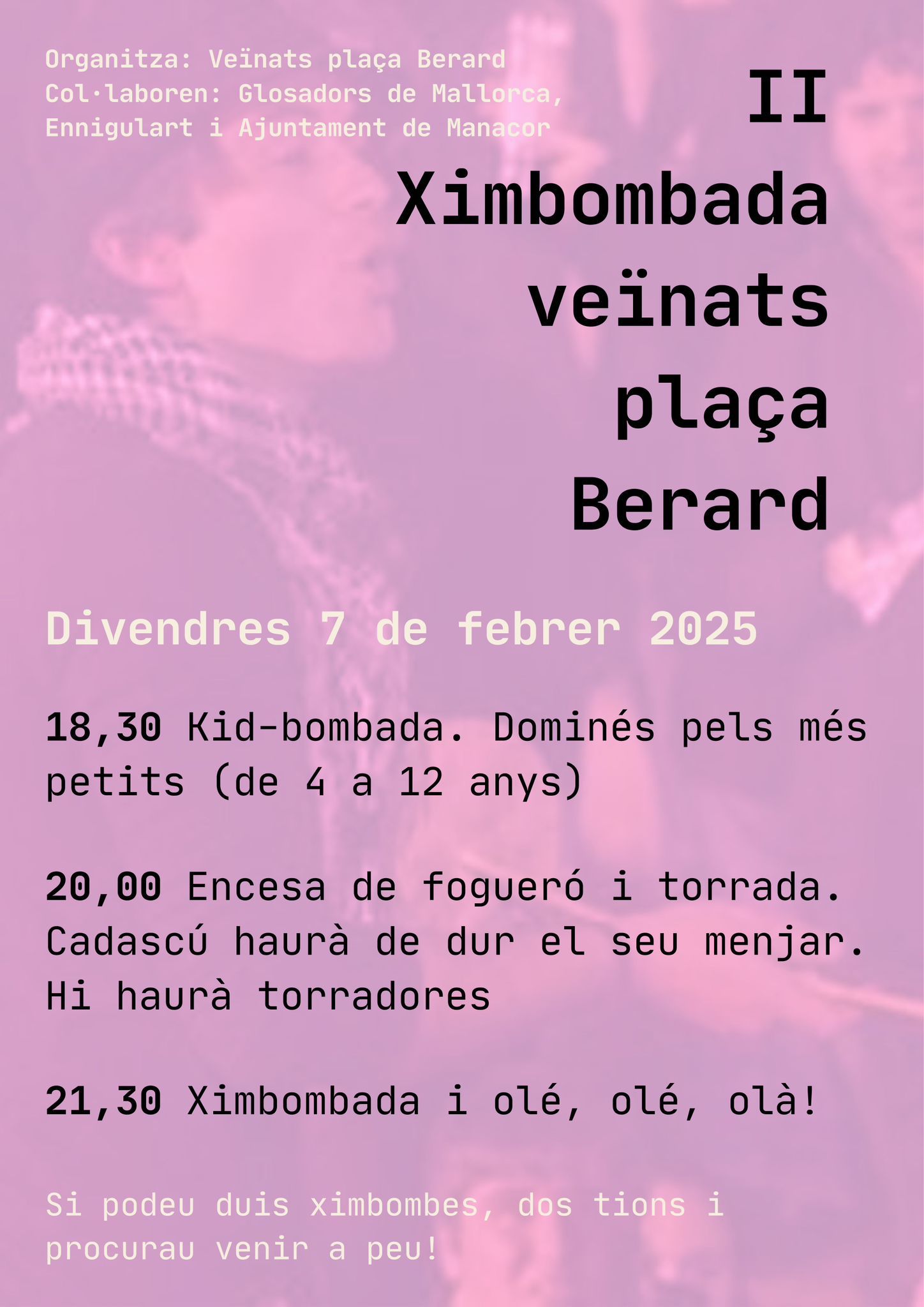 És així que l’any passat va néixer la iniciativa d’una ximbombada a la plaça de Berard, que l’any passat ja va congregar un bon grapat de veïnats i amics al renovellat espai del costat del carrer de Sant Rafel, “aquell carrer”, que diria Toni Gomila.