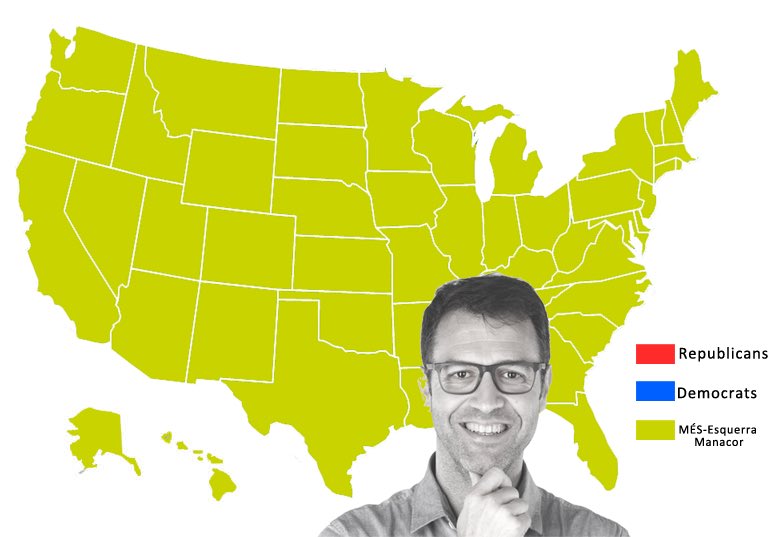 Ja se sap que dins el món de les xarxes hi ha gent que té temps, gust i humor per a tot. És el cas del tuitaire Miquel de la Mel, que ha oferit informació de darrera hora sobre l’incert resultat de les eleccions als Estats Units. De matinada, el president Donald Trump ja avisava que si no guanyava ell ja es cuidaria de cercar una resposta al que consideraria un frau electoral. Altres notícies donaven, per un marge molt estret de representants, Joe Biden com a guanyador. La clau, però la tenia Miquel de la Mel. El tuitaire manacorí ens aclaria que de dubte, cap ni un, MÉS-Esquerra Manacor ha guanyat a tots els estats… i Miquel Oliver serà el nou president-batle de tots els americans.