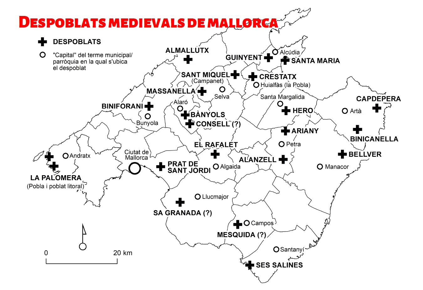 Sí, per exemple, Sant Miquel de Campanet, on ha quedat només l’església tota sola. Sabem que hi havia hagut un poble, o també l’oratori de Sant Tem, amb la pobla de la Palomera, o l’oratoria de Santa Anna d’Alcúdia, que es deia abans Santa Maria. I a part també hi ha casos en què no ha quedat absolutament res. O d’altres que després de desaparèixer, reneixen perquè s’hi tornen a fer establiments. A Esporles hi havia un nucli anomenat vila que desapareix, i al mateix lloc al segle XVI es torna a formar un altre nucli. El mateix passa a Ariany, on un nucli consolidat desapareix al segle XIV i reneix al segle XVI com a conseqüència d’establiments.