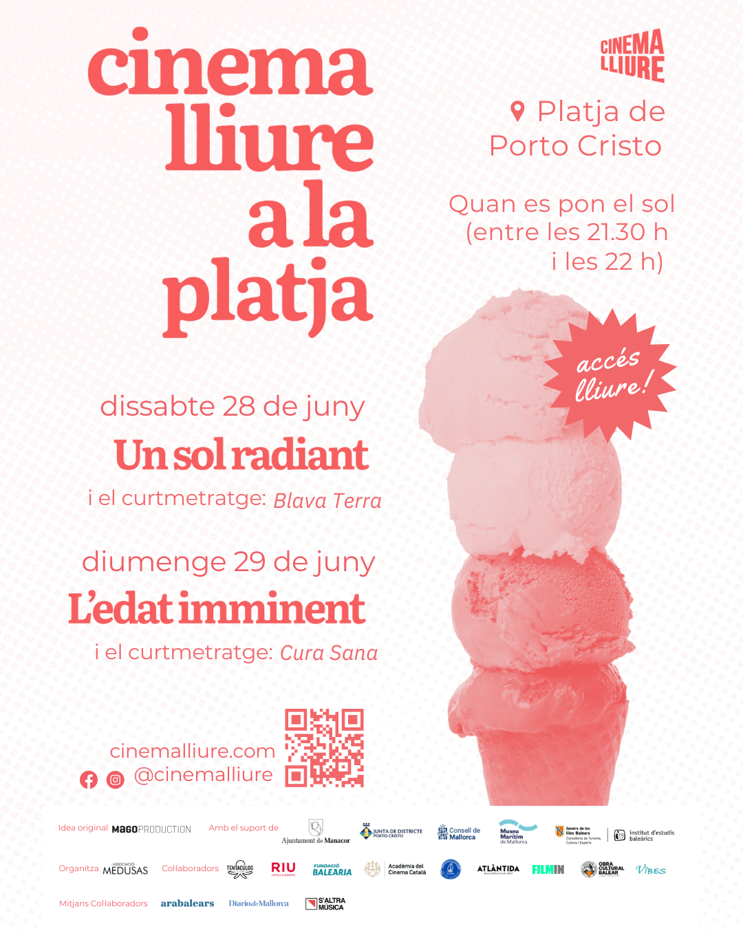 Cinema Lliure a la Platja és un projecte nascut l’any 2011 a la platja de Sant Sebastià de Barcelona, amb la voluntat d’oferir sessions de cinema independent de qualitat en espais públics, oberts i accessibles. Amb els anys, la iniciativa s’ha estès per diverses platges del litoral català i mallorquí, arribant enguany per primera vegada al municipi de Manacor, gràcies a la col·laboració entre el projecte i l’Ajuntament de Manacor.