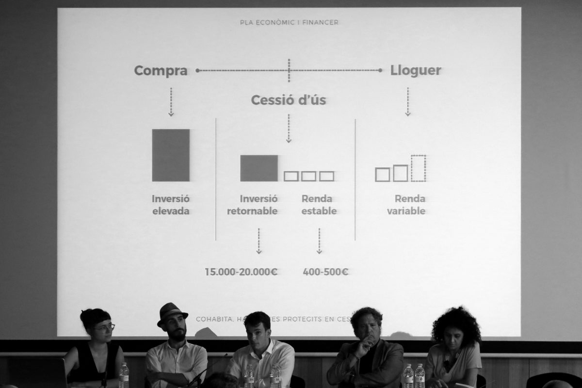 La cessió d’ús és un sistema d’accés a l’habitatge habitual a altres països com Uruguai i Dinamarca, on hi ha 800.000 habitatges d’aquest tipus. En el nostre cas, presenta cinc principals avantatges. És assequible; l’eliminació dels beneficis del promotor, la cessió de sòls públics i la subvenció de l’IBAVI permeten oferir un habitatge amb una entrada inicial retornable d’entre 15.000 i 20.000 euros i una renda assequible d’entre de 400 i 500 euros. És estable; el dret de superfície permet a la cooperativa gaudir del sòl un termini de 75 anys, amb la possibilitat de pròrroga fins un màxim de 99 anys. És flexible; es pot renunciar a l’habitatge i quan entri una nova persona associada recuperar l’entrada inicial actualitzada segons l’IPC. És social; és una fórmula de gestió col·lectiva de l’habitatge i de corresponsabilitat, en què, a més de la conservació i administració de l’edifici, es decideix el model de convivència que es vol impulsar. I és ambiental; tots els projectes arquitectònics segueixen criteris que permeten reduir l’impacte ambiental de la construcció i prioritzen la utilització d’energies renovables i materials locals.
