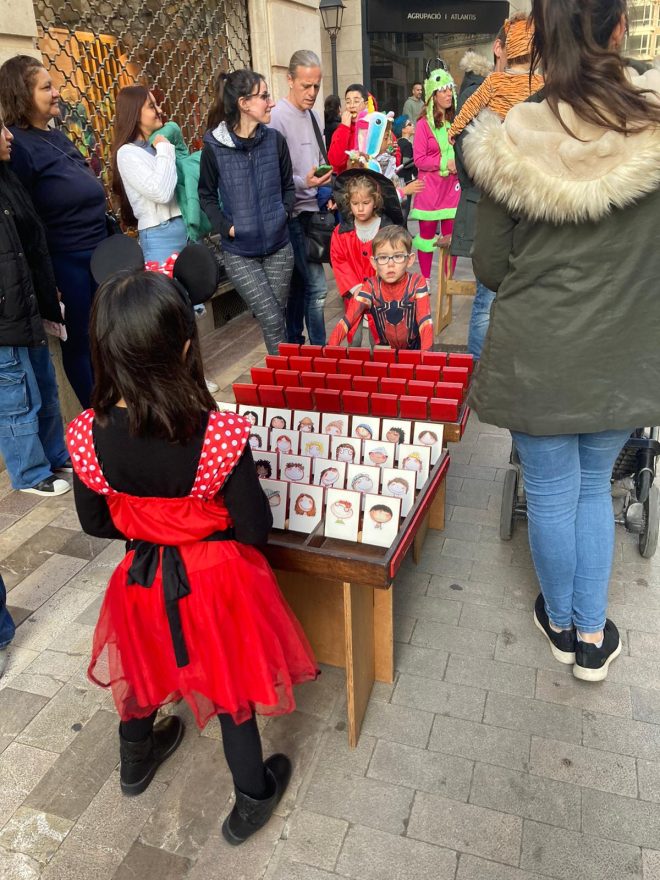 En els ullons dels infants s’hi respira la il·lusió per una fressa que no podran recordar més que en una fotografia antiga i gastada, atesa la seva prematura i precoç participació a la festa. D’altres baden uns ulls com a plats davant l’esclat en festa d’un poble que estaven avesats a saludar tranquil cada dia en anar a escola i que ara veuen desbordat per la música amplificada, pels micròfons i les veus que criden, per les veus dels majors i pels xiscles eufòrics dels més grandets en trobar-se en un entorn festiu i allunyat de l’escola amb els seus companys de cada dia.