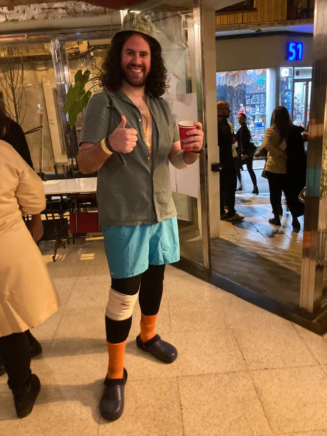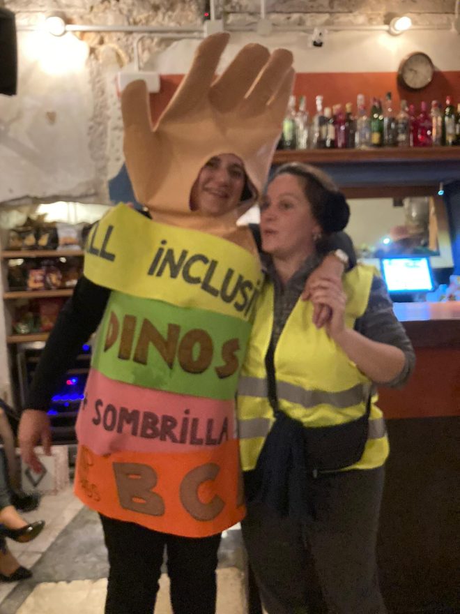 La Rua de dissabte transità per Na Camel·la, nodridaa amb nombroses comparses, algunes de les quals podien ser qualificades sense por d’exagerar de multitudinàries. La música amb tints brasilers acompanyava la desfilada, que entre somriures, rialles empegueïdes i d’altres d’orgulloses, es diluiria pels carrers del centre així com acabava. Després vendrien les copes, els aperitius i els sopars. A molts de locals del centre la gent hi sopava, amb la incomoditat comprensible de la fressa que duien, ben desfressats i animats. De fet, en alguns locals proposaren fins i tot una temàtica pròpia, com és el cas del Cafè Can Lliro, que amb el lema “El turisme mos va salvar” donaven llibertat de fressa als seus parroquians. La vetlada, aquí i allà, aniria morint a poc a poc, i mentre n’hi havia que d’amagat cercaven l’amor dins la fressa, d’altres allargaven la nit tant com podien, abduïts per la rialla, amarats de qualque copa de suc de demés o meravellats per la bellesa insondable d’uns ulls pintats com mai abans els havien vists.