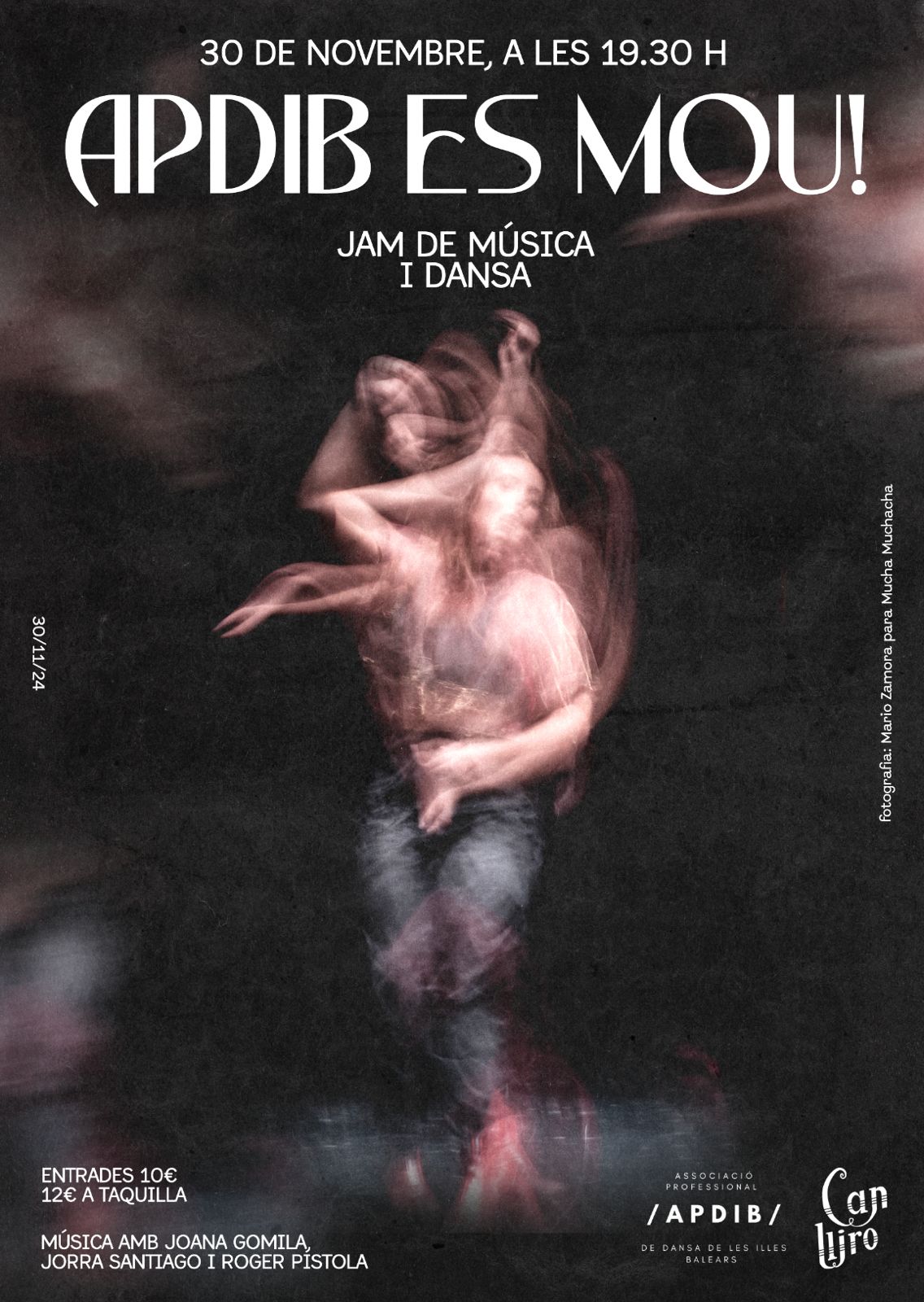L’APDIB, Associació Professional de Dansa de les Illes Balears, ha organitzat una JAM de dansa i música que celebrarà dissabte que ve, dic 30 de novembre, a partir de les 19.30 h a Can Lliro. L’esdeveniment, que tendrà una durada d’1 hora i quart, és una experiència creativa que promou la dansa i connecta el moviment amb la música a través de la improvisació i l’atzar.