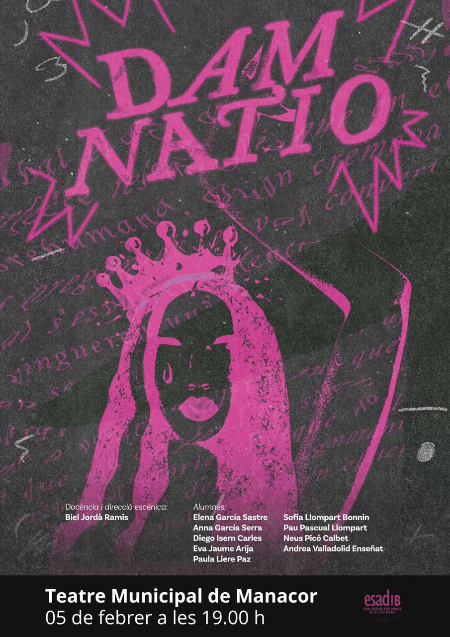 L’obra és una producció de l’Escola Superior d’Art Dramàtic de les Illes Balears (ESADIB), en col·laboració amb el Teatre Principal de Palma i el Teatre de Manacor, i és fruit dels tallers de l’alumnat de quart que cada any es fan. Enguany és la primera vegada que aquests muntatges surten de gira per diferents teatres de les Illes Balears i és per això que el pròxim dia 5 arriba Damnatio a Manacor.