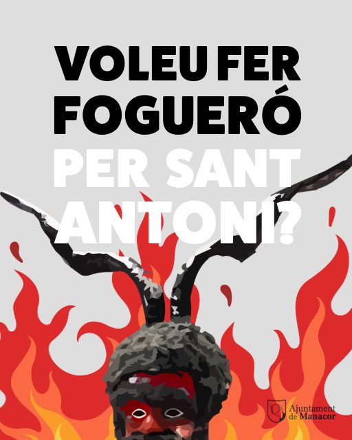 L’Ajuntament de Manacor ha informat avui a través de les xarxes socials que demà, dia 3 de gener és el darrer dia per a sol·licitar terra per als foguerons per a l’edició 2025 de Sant Antoni. La sol·licitud és pot fer presencialment o telemàticament, a través d’aquest enllaç i així mateix, en aquesta sol·licitud podeu explicitar si voleu que el fogueró entri o no a concurs.