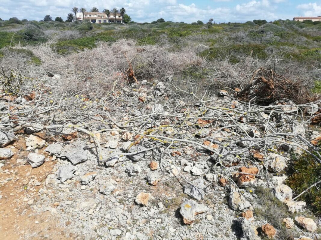 Uns veïnats de la zona del caló d’en Rafelino ens han fet arribar unes imatges del redol per denunciar moviments de pedres i tala de mates i altres plantes amb l’objectiu de desviar el camí que els passa per davant la finca. Segons explica aquesta veïnada, “nosaltres solem passejar per allà, i vàrem veure que havien arreglat el camí i semblava que havien donat un pas”. Tanmateix, un altre dia hi tornaren passar i trobaren una persona “d’aspecte alemany, el saludàrem i no ens va tornar contesta. Comentàrem el fet amb les persones que venien amb nosaltres i ens giràrem per mirar-lo, i vàrem veure que començava a col·locar pedres grosses per impedir el pas. Uns metres més enllà començàrem a veure també que tots els caminois estaven plens de pedres, de fullaca, de mata…”.