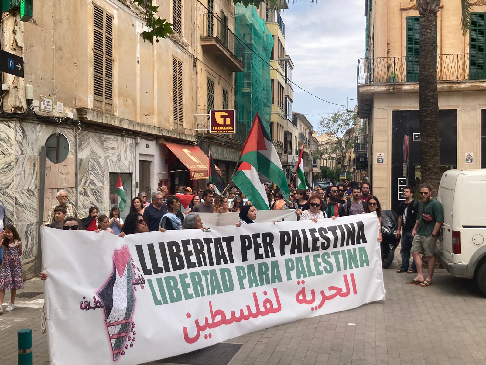 La comitiva girà una altra vegada cap a Francesc Gomila per acabar a la plaça del Convent, on es va llegir el manifest: ”I avui hem sortit al carrer per dir una vegada més que Palestina existeix, que el poble palestí existeix, que no és una guerra, és un genocidi, que no és un conflicte, és una ocupació, i que les resistències són resistències, no terrorisme”.