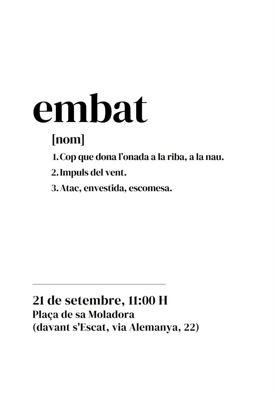 Dissabte 21 de setembre a Manacor, a les 11h, a la plaça de sa Moladora, es presentarà la nova organització política Embat de Manacor.