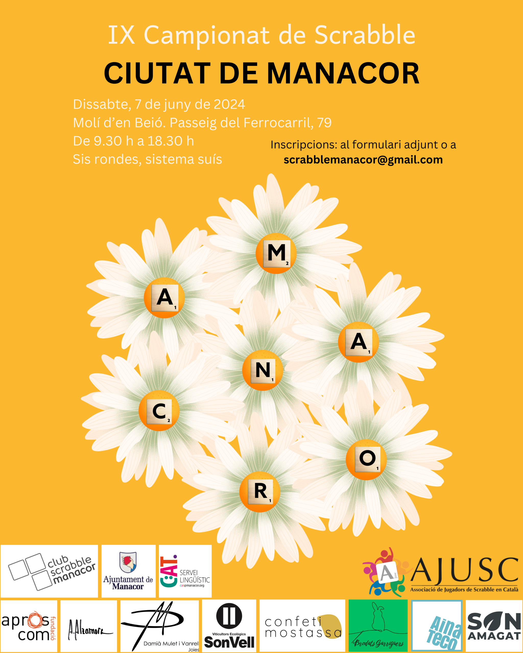 Dissabte que ve a partir de les 9:30h i durant tot el dia tendrà lloc la disputa de la novena edició del Campionat de Scrabble Ciutat de Manacor. La inscripció d’aquesta edició, que encara roman oberta, ha estat tot un èxit i encara aspira superar els 51 inscrits de l’any 2017, és la millor d’aquest esdeveniment d’ençà de la pandèmia. El Ciutat de Manacor és un dels campionats més prestigiosos del calendari escrablístic català, i cada any compta amb la participació d’alguns dels millors jugadors del moment.