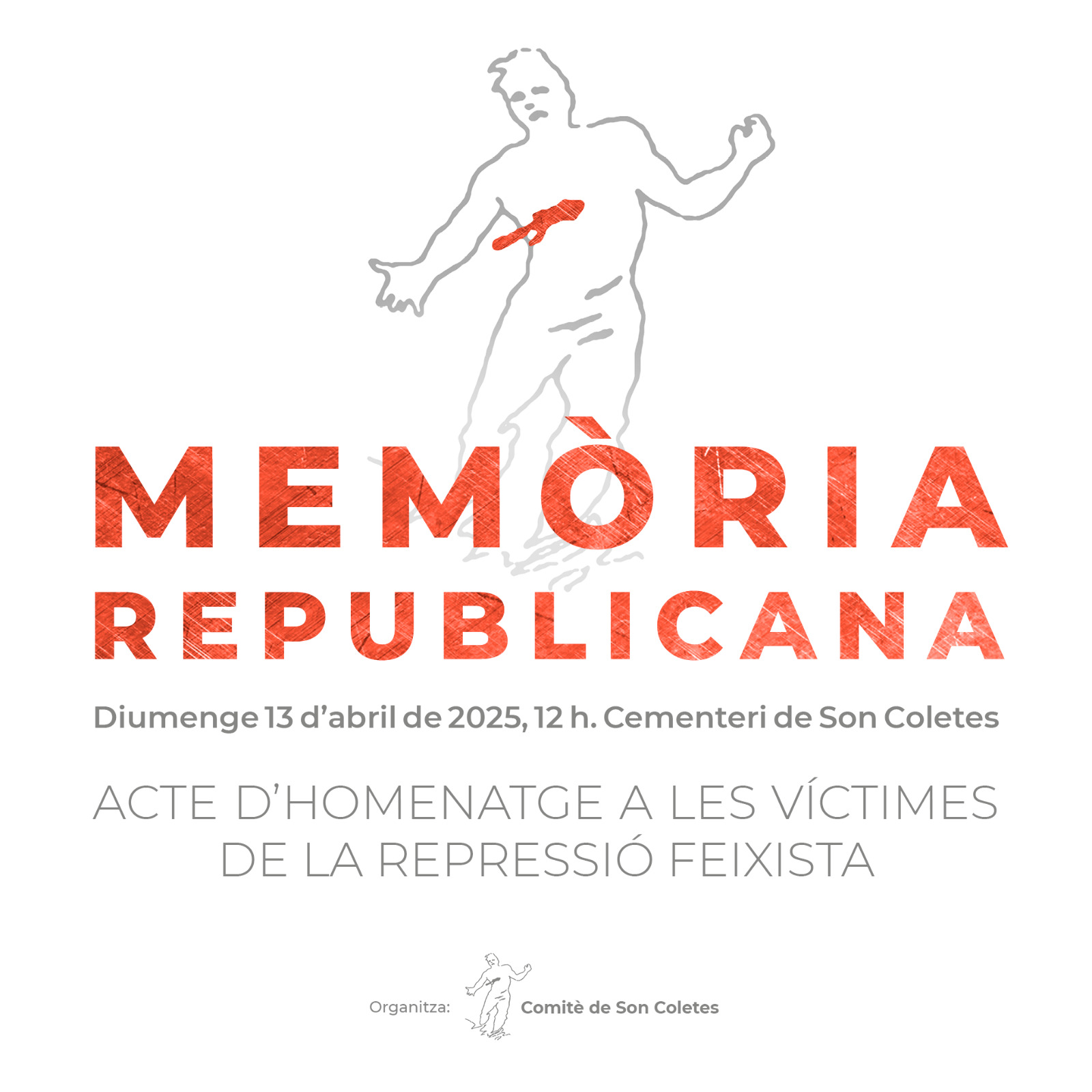 Com és tradició des de fa més de quatre dècades, el Comitè de Son Coletes convoca per a diumenge que ve, el dia més pròxim al 14 d’abril, data de la proclamació de la segona república espanyola, l’acte en memòria de les víctimes republicanes, que tendrà lloc davant la fossa comuna del cementeri manacorí a partir de les 12h del migdia.