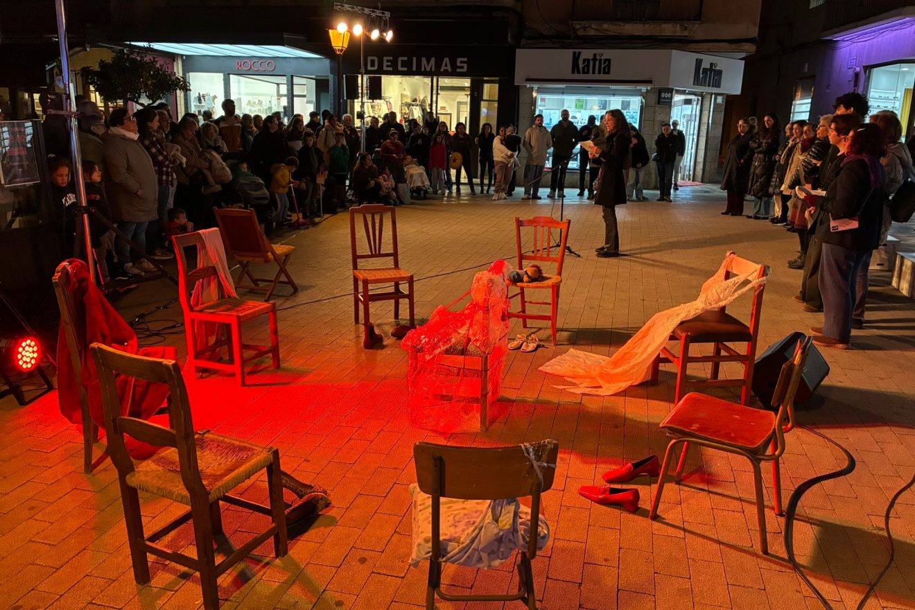 Finalment feren referència a les pintades vandàliques que han aparegut fins a tres vegades en el bust d’Aurora Picornell al Molinar. “El presidente del Parlament en va esqueixar el retrat en plena sessió plenària”. El manifest es va llegir davant una instal·lació de l’artista Maria Huerga, amb les cadires que simbolitzaven la fuita, camí de la llibertat, de les dones de la violència que les assotava.