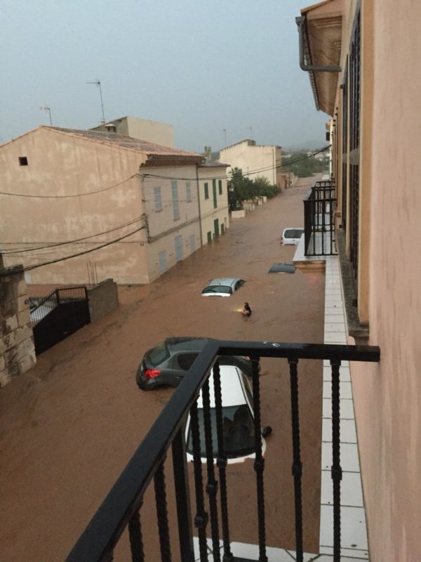 Un vídeo de la plaça de l’Ajuntament llorencí amb l’aigua corrent a tota velocitat i arrossegant els cotxes mostrava amb tota la seva brutalitat la força de l’aigua desbordada. I també, ben aviat, se succeïen les notícies sobre l’arribada dels torrents a Porto Cristo i, sobretot, a s’Illot.