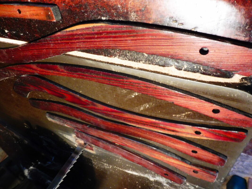 Mentrestant, la feina de muntatge dels esquelets dels balancins i el posterior vestiment amb les teles tan diverses de que disposen, continua, lenta, però inexorable.