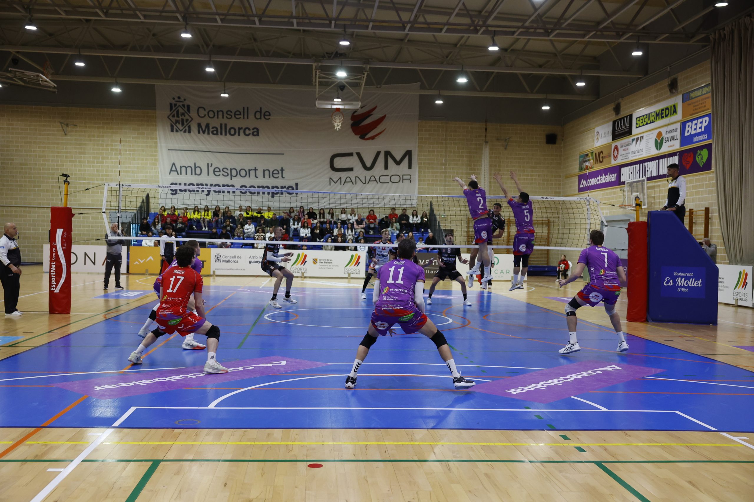 Jugades tàctiques i precises en tots dos conjunts que mantenien la paritat han marcat el primer set, fins que Manacor s’ha enlairat amb el servei directe. El tàndem Lorente i Ribas han imposat el seu bloqueig, trencant la dinàmica visitant, així com dificultant-los la recepció, tancant el set 25-15.
