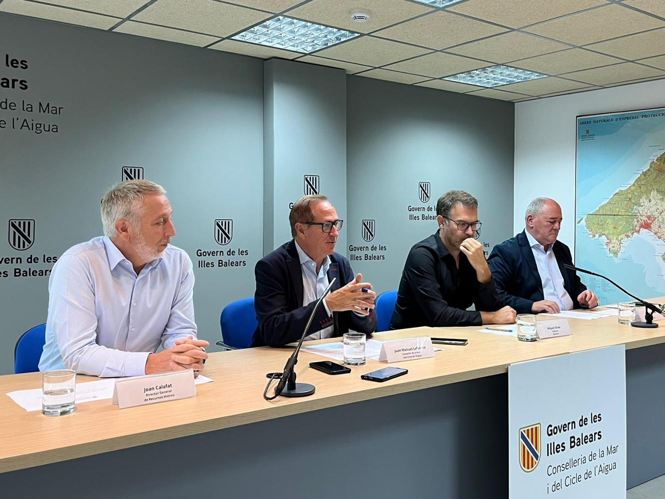 El Govern ha presentat aquest migdia, a la seu de la Conselleria de la Mar i del Cicle de l’Aigua, el projecte per fer arribar aigua en alta fins a Manacor. L’acte ha estat presidit pel conseller Juan Manuel Lafuente, que ha estat acompanyat pel batle de Manacor, Miquel Oliver; pel director general de Recursos Hídrics, Joan Calafat, i pel gerent de l’Agència Balear de l’Aigua i de la Qualitat Ambiental (ABAQUA), Emeterio Moles.