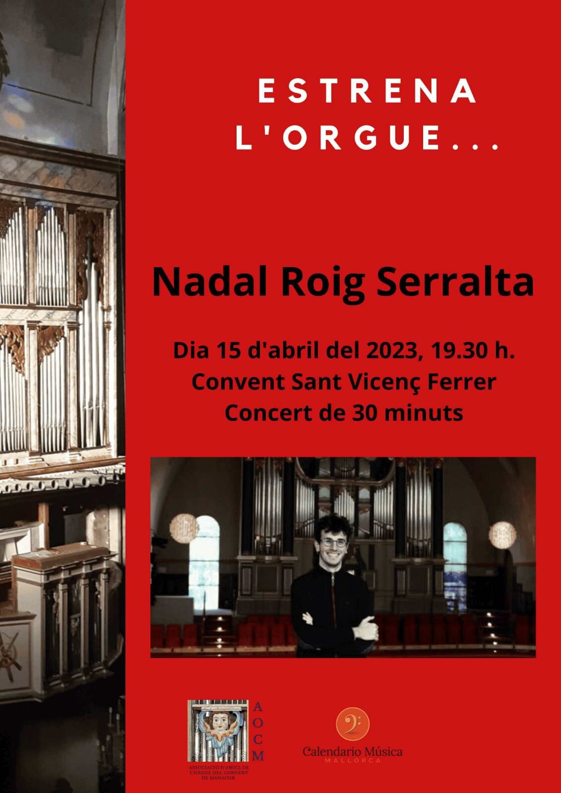 Nadal Roig (Petra, 2000), ve a tocar el dissabte 15 d’abril a Manacor a les 19.30 hores, a l’orgue del Convent. Aquestes darreres setmanes ha estat present als mitjans de comunicació per un recent concert: va tocar a la Berliner Philharmonie, reconeguda com una de les sales més importants del món.