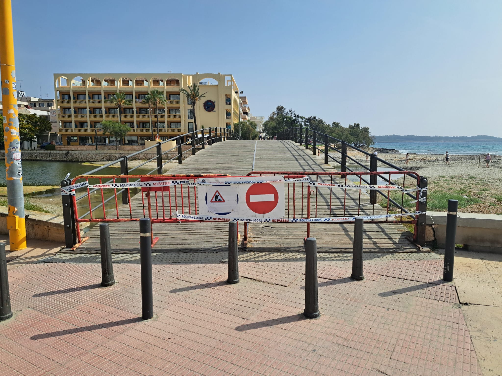 No hi podrà passar ningú pus fins que no estigui arreglat. Aquest és el missatge que ha transmès avui l’Ajuntament de Manacor. Els accessos al vial han estat precintats avui dematí per agents de les policies locals de Manacor i de Sant Llorenç. L’accés al públic al pont queda completament restringit davant “les recomanacions tècniques emeses, davant l’increment de pressió humana i de pas que es preveu durant la temporada turística” i a causa també de “l’estat actual del pont, que no ofereix les condicions necessàries per garantir el pas segur de vianants”.