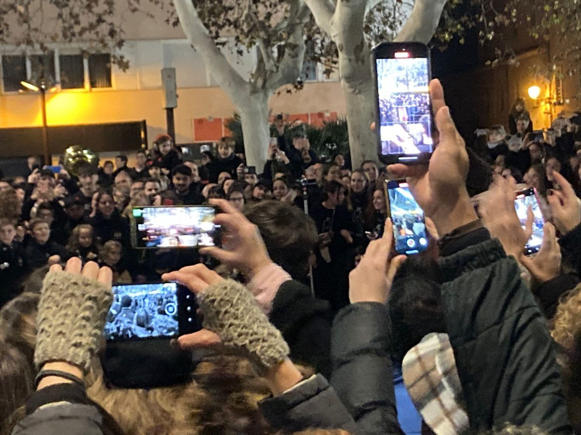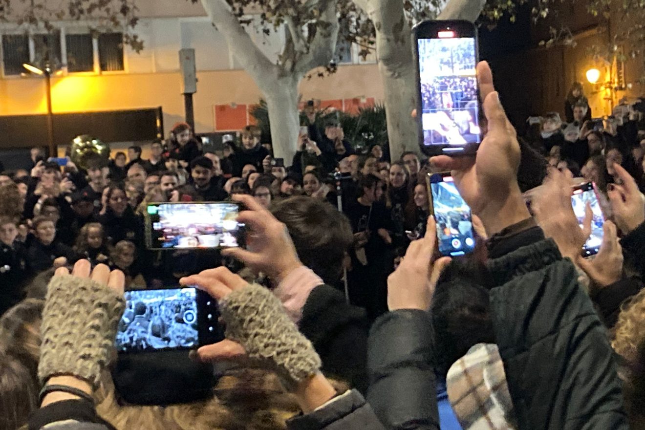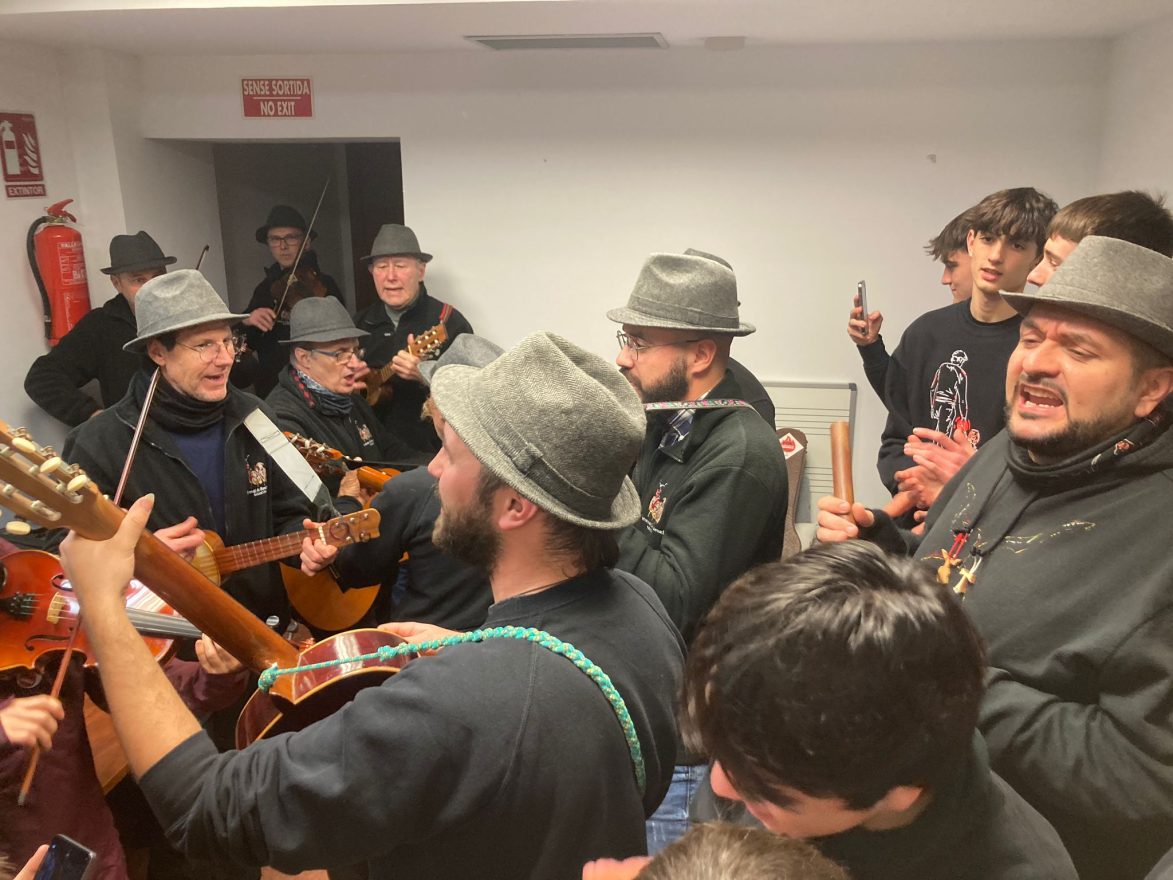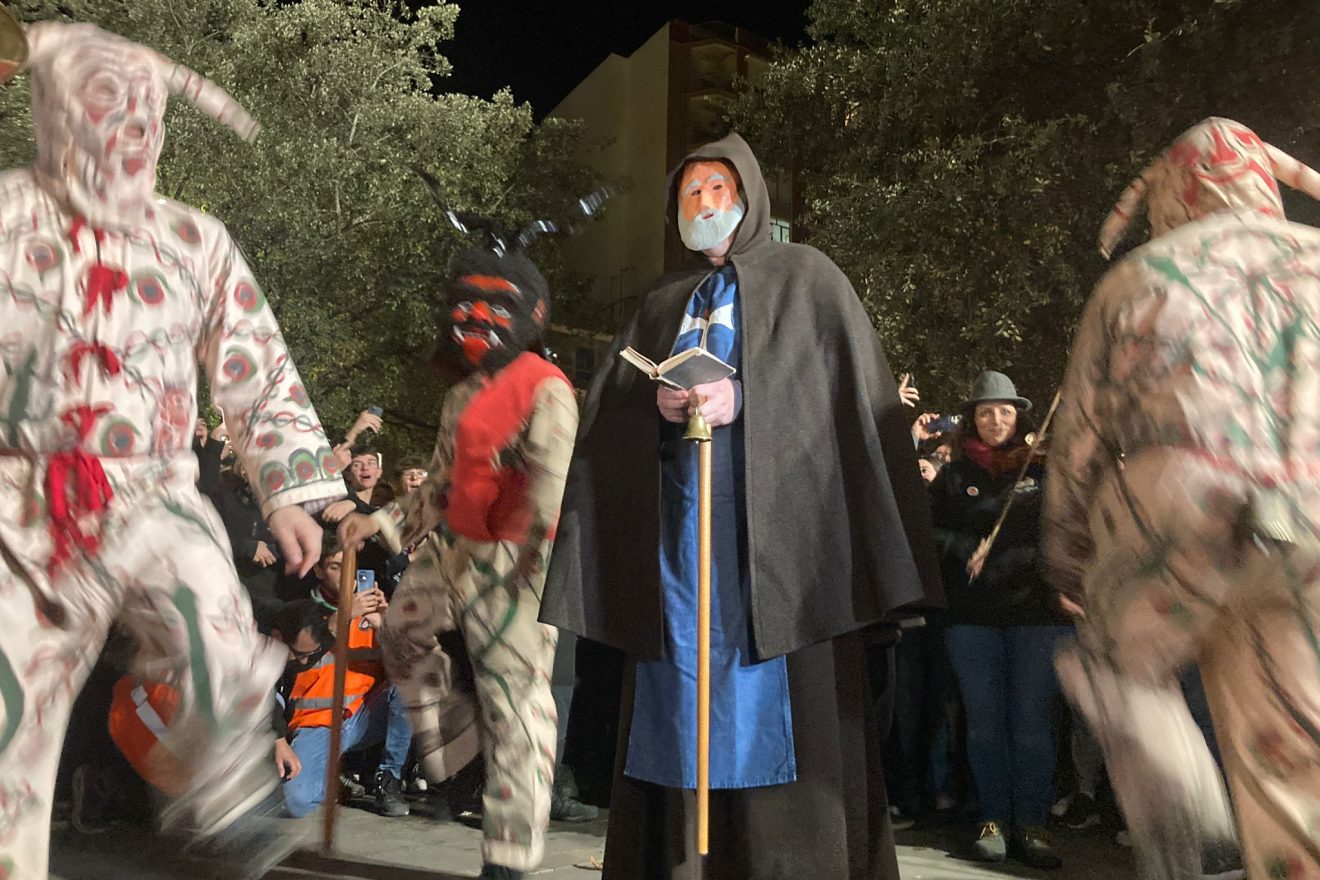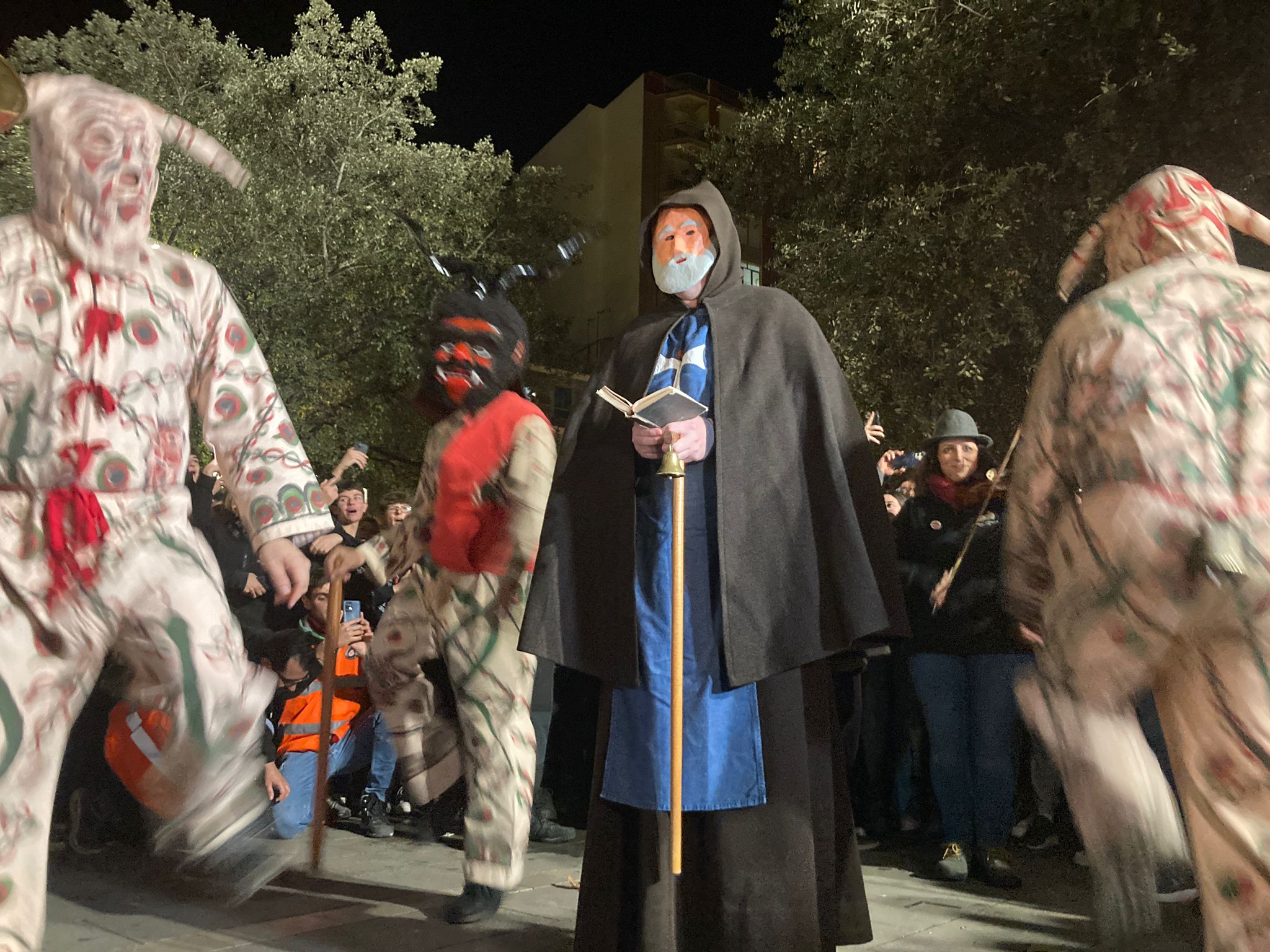Surten els dimonis. A mitjan passadís, la premsa, esperant l’envestida. La comitiva és encapçalada per un estol de policies que sembla sobredimensionat. Després, els xeremiers, i finalment els protagonistes de tot: dimonis, sonadors i banda. Arriben al primer rotlo i enceten amb la universal Trenta-u. Tothom la sap. Tothom la canta. Són veus blanques, joveníssimes. Un nin que no té gaire més de dotze anys fa gests esportius amb el puny per la victòria assolida, emocionat, “vamos, vamos” mentre articula el braç a la manera de Rafa Nadal. Després ve la Barqueta, tantes vegades repetida, i tot va com una seda. Però quan toca la Mudada Honesta el cor juvenil baixa i se senten lleus i llunyanes les veus dels abnegats sonadors.