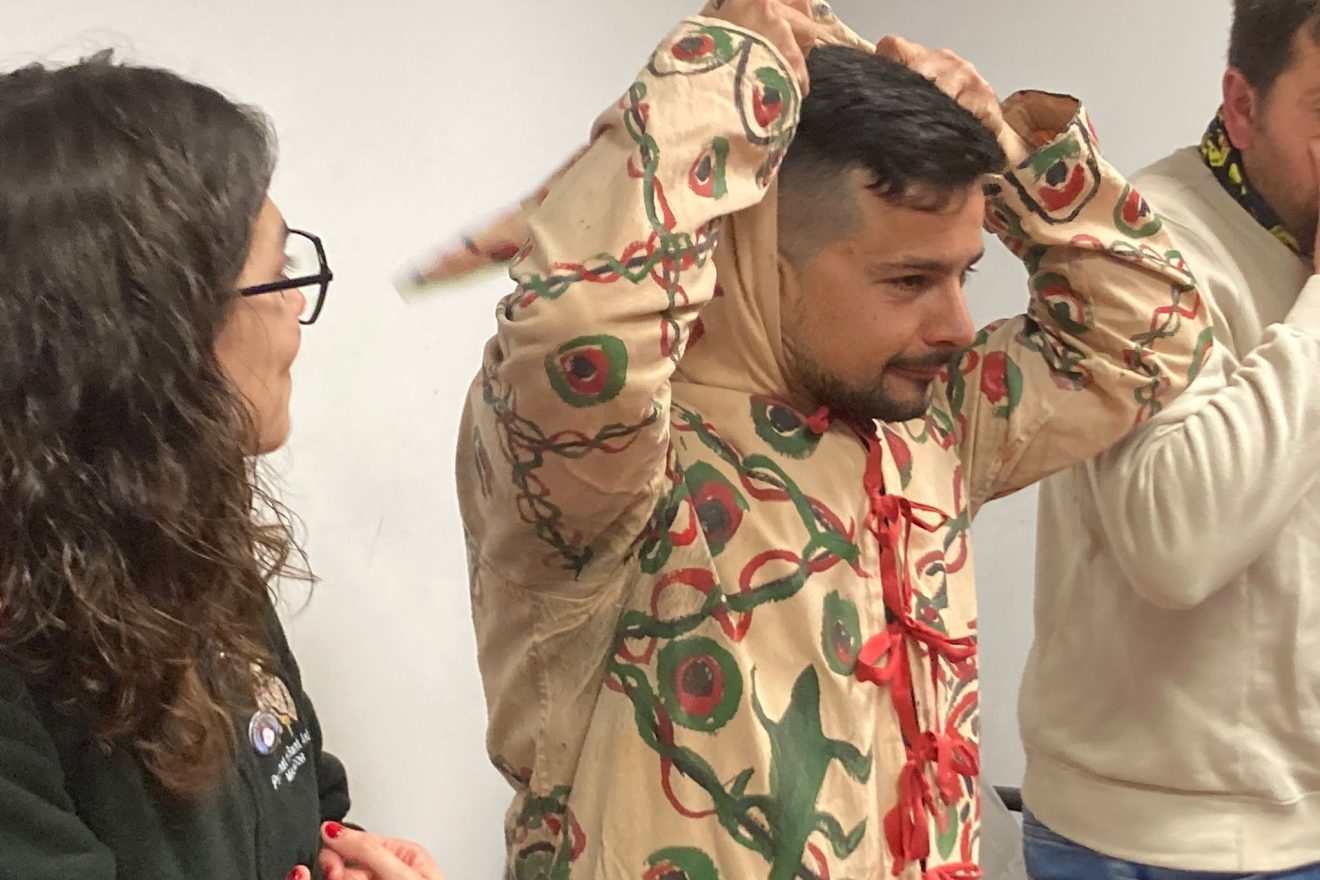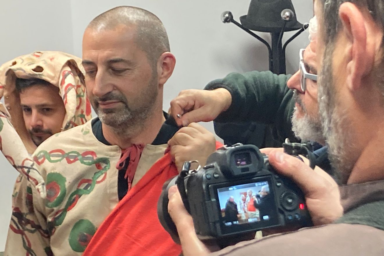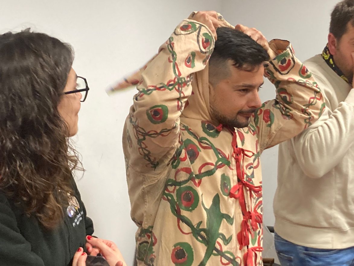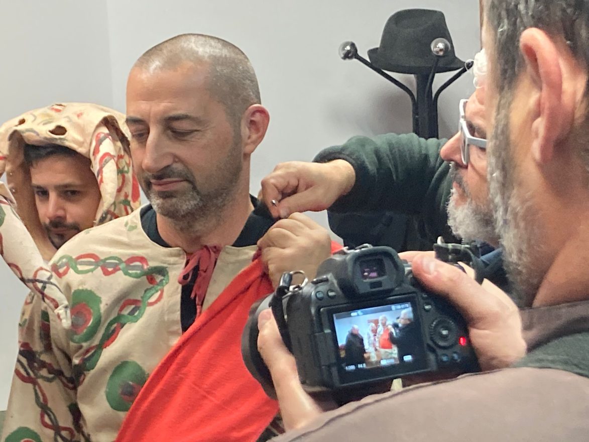 La puntualitat és extrema. Mateu Juan, el baciner, ajuda els dimonis i Sant Antoni a vestir-se davant familiars, amics i premsa. Els sonadors amenitzen el moment amb cançons de la festa, mentre Mateu Aleix trava la faixa vermella del dimoni gros amb agulles enganxadores. Sant Antoni ja du la capa i Antoni Bassa, ja amb el casquet passat, es disposa a enfundar-se la carota. Tot està a punt. Els flaixos reiteren l’interès mediàtic i personal. Però no surten, bàsicament perquè no són les deu. Defora, els xeremiers entretenen la gent que espera amb una sonada. I de sobte, un sol coet, la flamarada al cel, i l’esclafit del petard, immediatament acompanyat d’un esclat de joia.