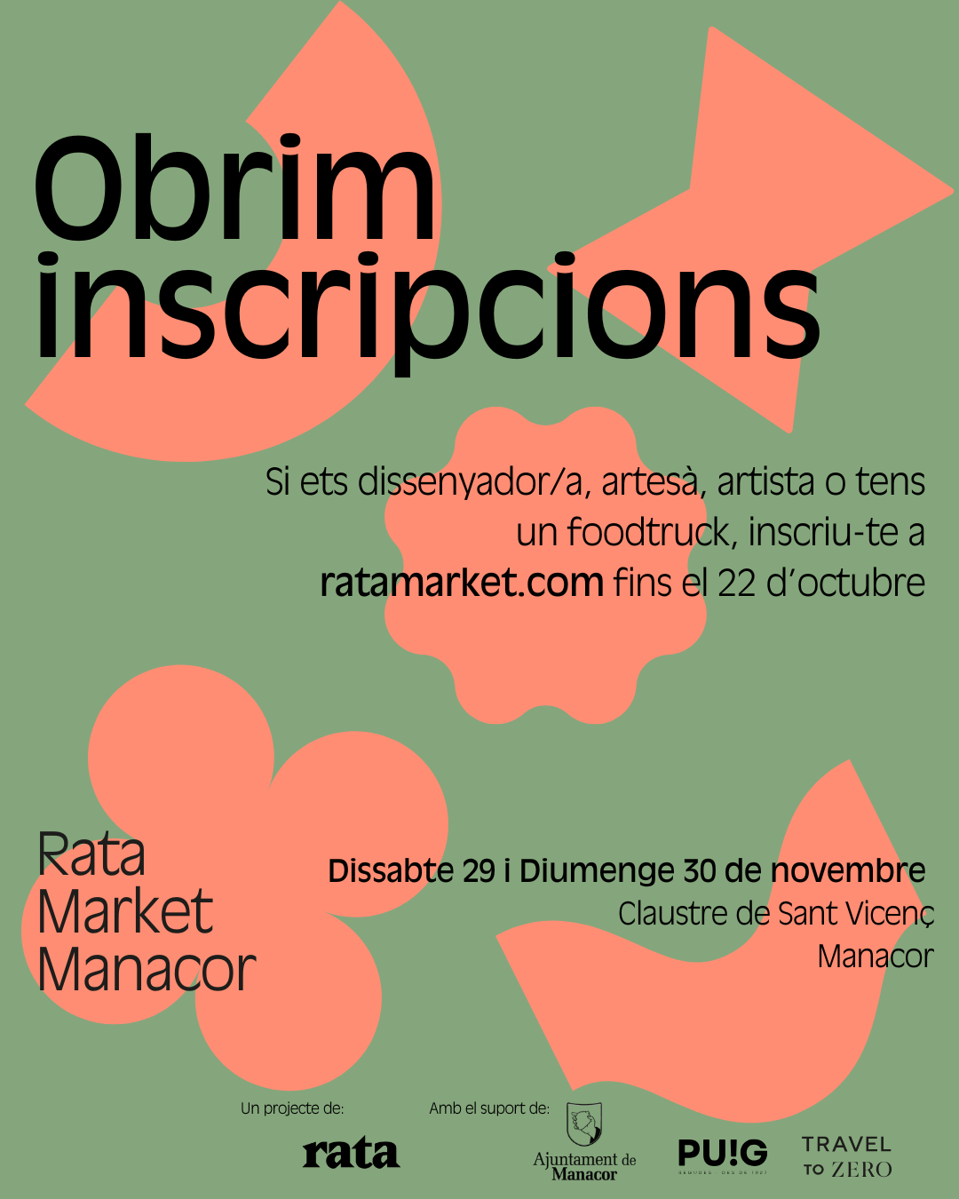 Les persones o projectes interessats a participar-hi ja poden inscriure’s a través del web www.ratamarket.com fins al 22 d’octubre. La convocatòria s’adreça tant a artistes, dissenyadors i artesans, com també a projectes gastronòmics i foodtrucks que vulguin formar part d’aquesta nova edició del mercat.