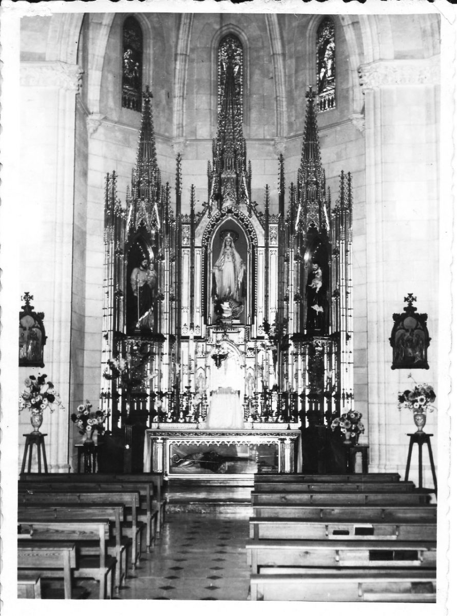El retaule és d’estil neogòtic, a conjunt amb l’estil del temple. És obra de l’escultor Alcover i fou beneït el 20 de juny de 1954. El retaule, tot ell de fusta, consta d’una predel·la molt alta, un cos principal amb tres carrers i un àtic compost per als dosserets. El retaule és presidit per una imatge de la Mare de Déu Miraculosa procedent dels tallers d’Olot, mentre que en el carrer lateral dret hi trobem una talla de sant Vicenç de Paül obra de l’escultor Vadell. En el carrer lateral esquerre, una altra talla de sant Josep també de l’escultor Vadell.