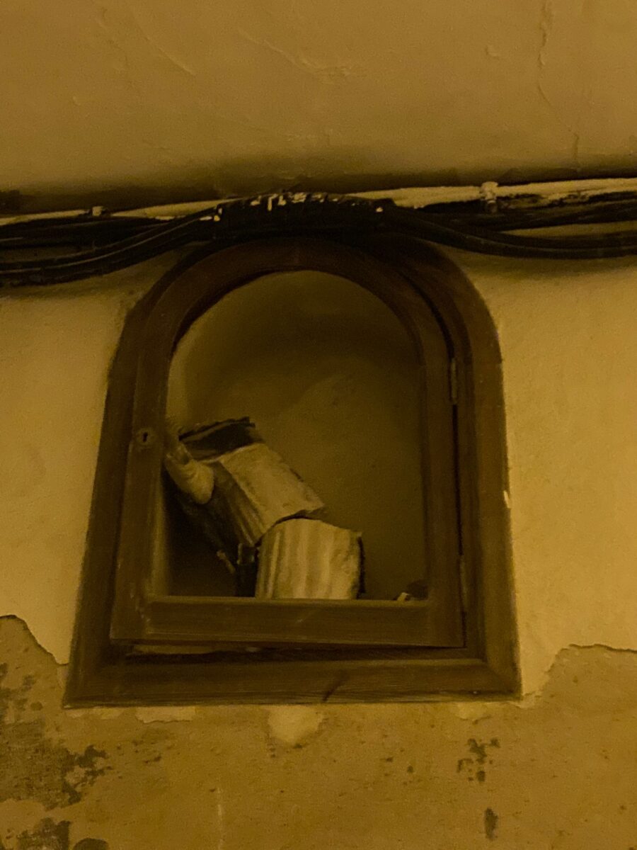 Així està el pobre home. La figureta de Sant Ramon que hi ha a la façana d’una casa del carrer que du el nom d’aquest sant, i que per aquesta mateixa figura és conegut com el carrer del Santet, està així de destrossada. Desconeixem si té cap casta de valor patrimonial. Sigui com sigui, és una llàstima que hagi d’estar així, i sobretot, que no compti amb una protecció una mica més segura per evitar que li pugui tornar passar aquest desastre…