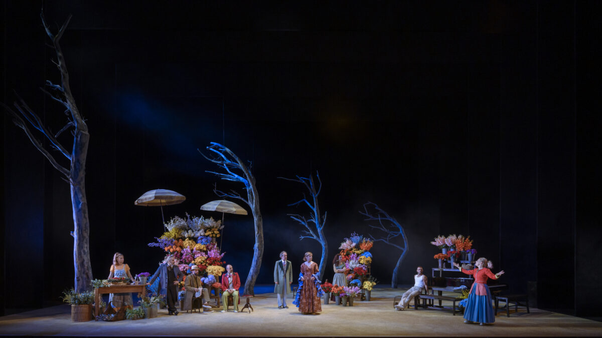 El vers s’ha d’entendre com una partitura. El Jordi tenia clar que no podíem saltar ni un punt ni una coma perquè la cadència del vers ens porta a la interpretació però també intentant fugir de la cantarella. Un cop teníem la partitura, l’encàrrec era humanitzar els personatges i buscar les emocions, traient la cantarella i baixar-ho a una veritat més actual. El Jordi sempre ens deia que érem la Royal Segarra Company perquè els clàssics catalans han tingut poca importància i nosaltres, d’alguna manera, la recuperem. La veritat és que després d’haver fet aquest muntatge, sorprèn molt que des de 1935 no s’hagi interpretat mai perquè és un text molt actual on el feminisme i la sororitat hi són molt presents. D’altra banda, pel que fa a la dansa, el Jordi Prat sempre fa molt treball de cos amb els actors i ell volia treballar-ho. En l’escenografia hi ha les parades de les flors davant de les Rambles i al fons hi ha els arbres. A la part de davant s’hi donen les escenes més íntimes i darrere de les parades hi ha un espai lliure on apareixen les ànimes de la Rambla, que són escenes que representen la col·lectivitat, homenatges a personatges mítics de les Rambles i a la història del nostre país.