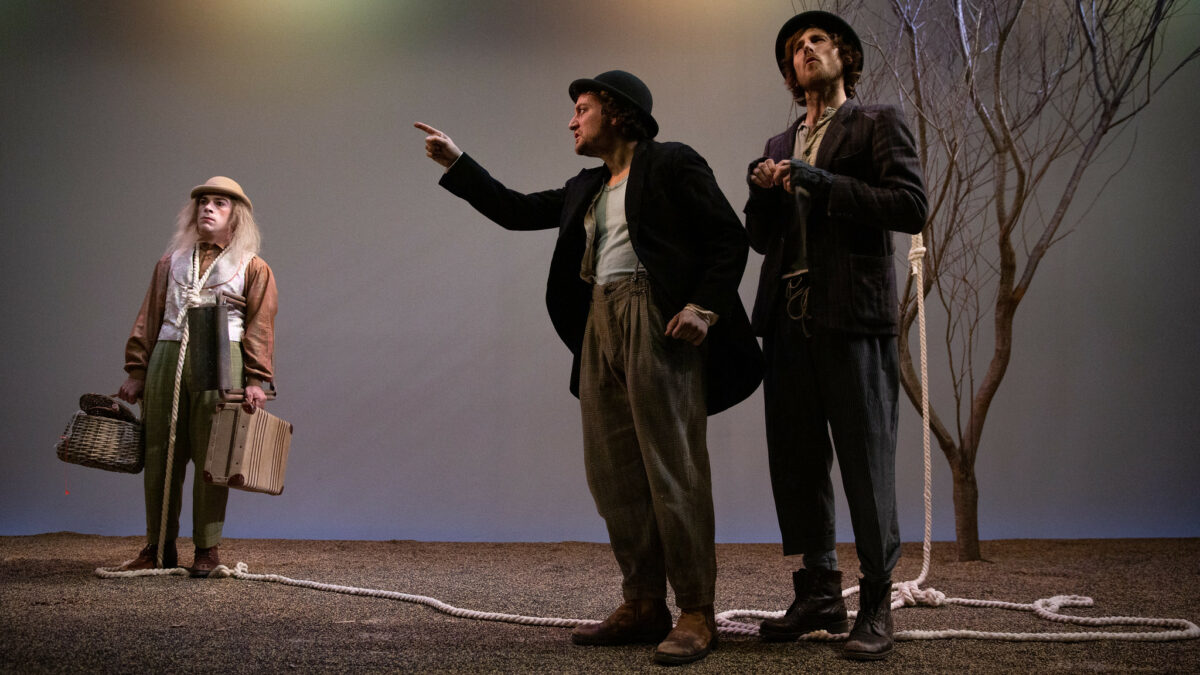La posada en escena és molt senzilla i en això recau la bellesa de l’espectacle. Es tracta d’un espai d’espera que transmet aquesta idea d’un “no lloc” i un “no temps” que està estàtic i no avança. En aquest sentit crec que també ha estat molt positiu ser fidel al text original i és un encert de Max Glaenzel. De fet, tinc entès que perquè et donin els drets de Beckett, sembla que no pots canviar gaires coses i has de mantenir l’arbre, l’essència de l’obra. De totes maneres, no em sembla absurd que sigui així perquè crec que hi ha elements que són tan significatius que si els toques o els canvies, el text perdria significacions. A nivell d’il·luminació es fa un joc molt subtil però molt bonic sobre el pas del temps: a poc a poc es va fent de nit i pel que han dit els espectadors és molt bonic i queda molt bé.