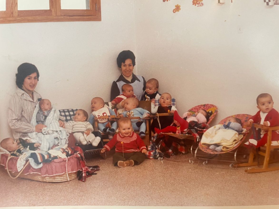 El mateix ens passà, en certa manera, amb Antonia Martínez Moratalla, la tia Antònia. Ella fou la nostra educadora d’infantil, junt amb altres companyes, a una novíssima Escoleta Municipal Nins i Nines, des que teníem mesos, l’any 1977, fins els quatre o cinc anys.