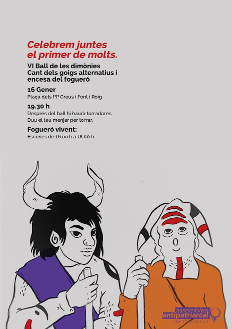 Just en acabar el cant dels goigs, sortiran les tres dimònies. Això sí, no ho faran fins que no se les hagi presentat com toca: amb una glosa. Aquesta serà punyent amb l’actualitat, però, afirmen des de l’Assemblea Antipatriarcal, que també serà “festiva” perquè dia 10 de gener ja haurà ballat una dona amb la colla oficial per primera vegada en la història.