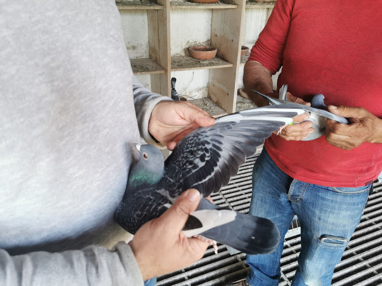 A més a més, durant la temporada bona de competició, que és de febrer a finals d’abril, entren en joc altres factors. El menjar, l’aigua, les visites dels manescals i les vitamines estan més controlades. Igual que un esportista d’elit, qui ha de menjar més fibra i probiòtics quan competeix. Als coloms, els hi donen trenta grams diaris de blat, xítxeros i altres. Tot mesclat. Cal destacar que quan competeixen, separen els coloms mascle dels coloms femella.