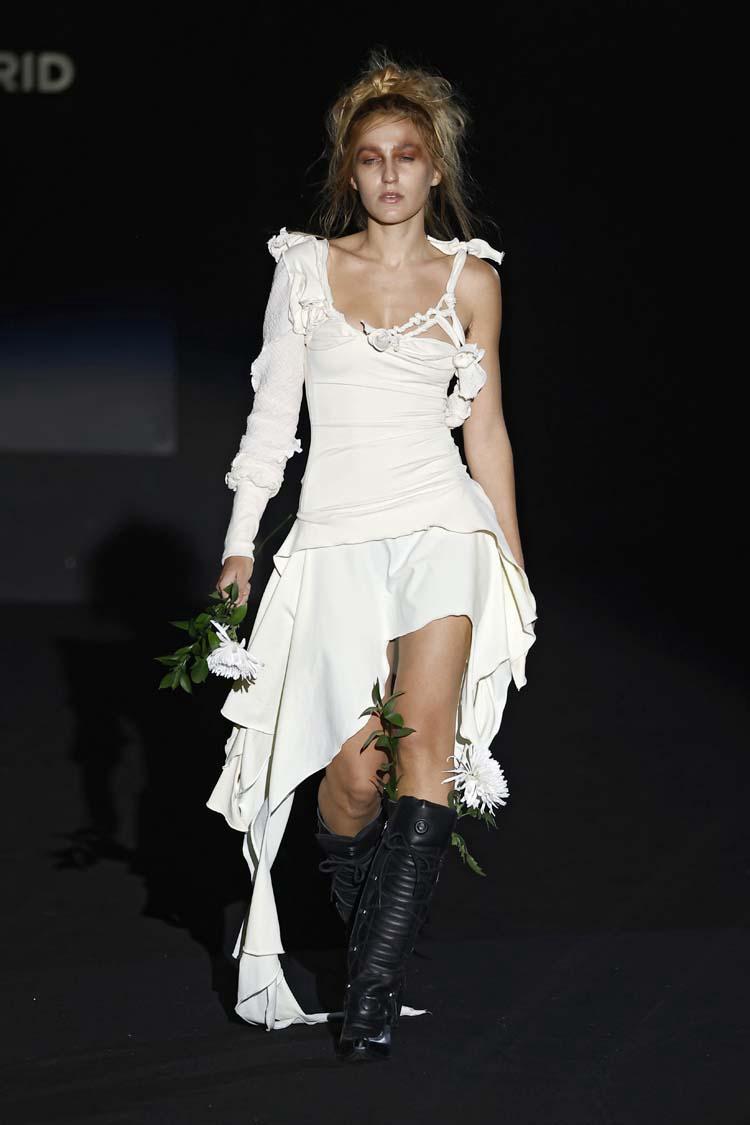 Sense respondre als paràmetres estètics canònics, la manacorina Maria Aguiló ha desfilat aquesta setmana a la Fashion Week de Madrid. Ho ha fet de la mà del jove dissenyador Arturo de la Rosa, que hi presentava la seva col·lecció de primavera-estiu per al 2025 sota el nom d’”Hijos de la incertidumbre”. El dissenyador ha apostat per una col·lecció centrada en la deconstrucció, de manera que les peces passen de ser una cosa coneguda a una altra de totalment inesperada.
