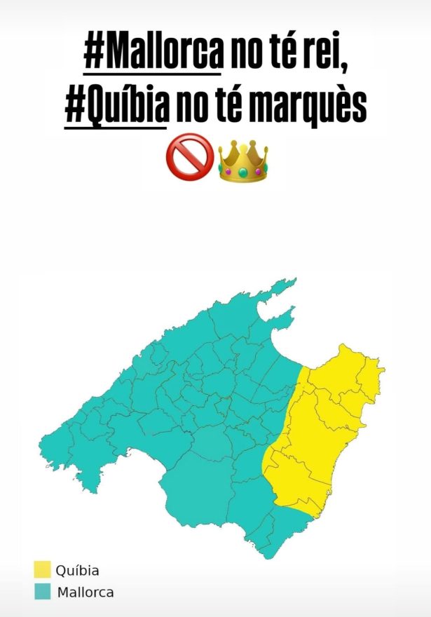 Els mems no s’han fet esperar. Una recreació de la rondalla d’en Joanet de sa Gerra, un escut d’armes amb raquetes, grues i euros, i un mapa de Mallorca amb l’àrea del marquesat remarcada en groc i una sentència definitiva: “Mallorca no té rei, Quíbia no té marquès”.