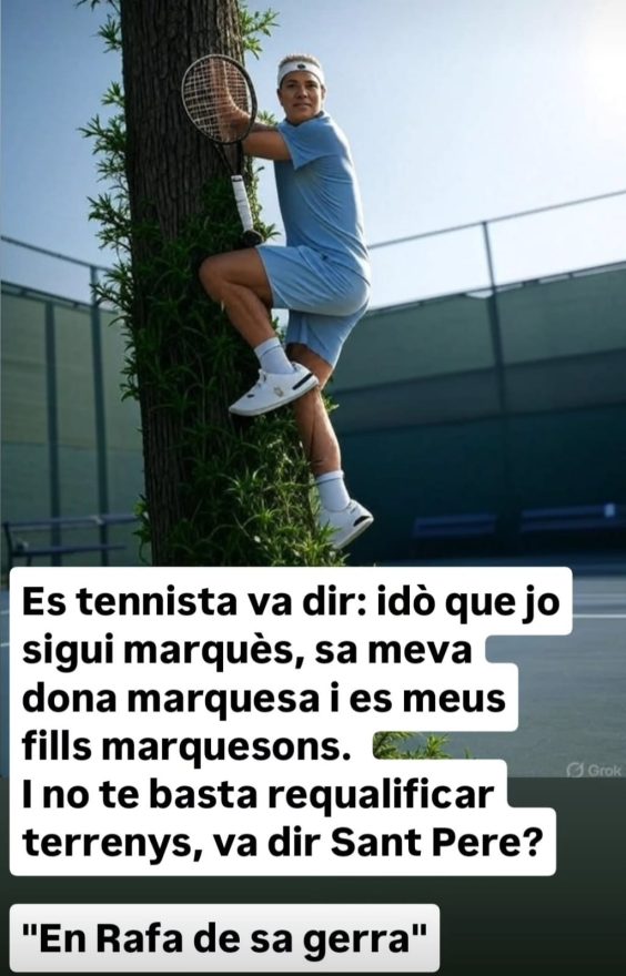 La notícia ahir horabaixa es va escampar com la pólvora. Rafel Nadal és nou marquès del Llevant de Mallorca. Fins que no ho han vist a mitjans fiables, molts de ciutadans no han donat crèdit a la notícia, que pareix més pròpia de fa dos-cents anys que no d’una societat presumptament moderna i avançada, com es pressuposa que és la riquíssima Mallorca, que no sembla que sàpiga treure profit humà d’aquesta prosperitat. El cas és que Rafel Nadal, fill de vidrier i net de músic i de moblista, ha rebut aquesta distinció per obra i gràcia del rei de tots els espanyols. Es tracta de la primera tongada de nominacions nobiliàries del rei Felip VI, ara amb l’excusa de l’aniversari de la seva coronació.