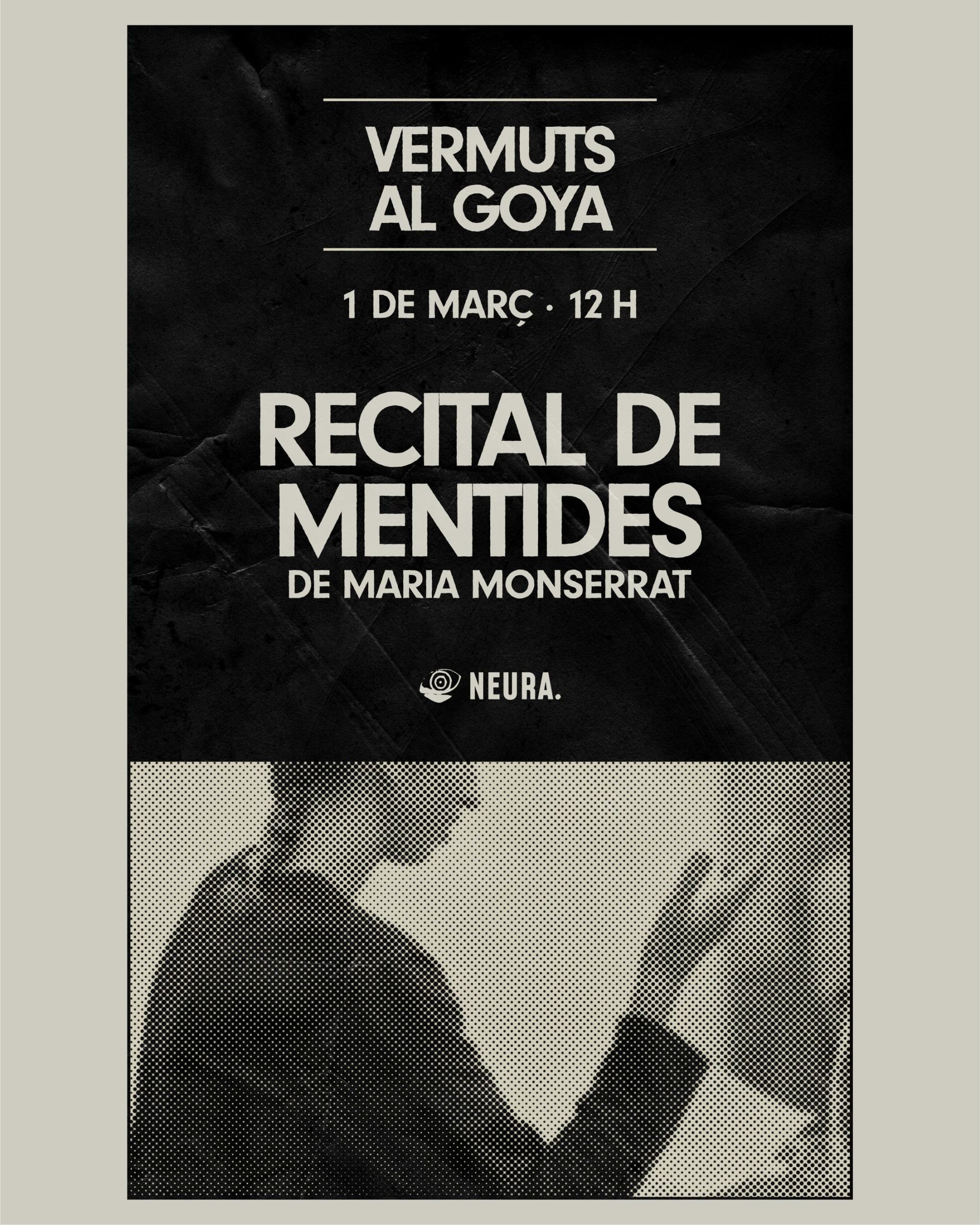 Maria Monserrat (Felanitx, 1996) diu que no té formació, però també diu que li agrada dir que és mentidera. De fet, al seu compte personal d'Instagram hi diu "Escriptora de pa i figa. Mentidera professional. Espectacles de literatura oral". Monserrat, més que escriure, conta, diu, narra, però amb la veu, que és com més ha vist que és capaç d'arribar als seus lectors, que, a la fi, són més oïdors que altra cosa... Dissabte a les 12h, convidada per Neura, ve a Manacor a contar-nos les seves mentides a l'Espai Goya.