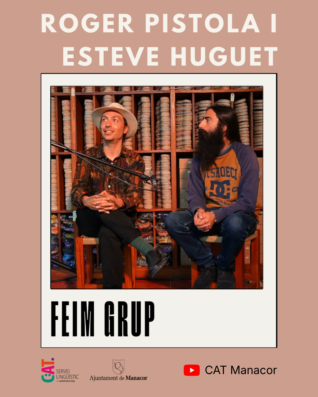 “Feim grup” consisteix en una sèrie de vídeos curts basats en entrevistes a músics i grups del municipi de Manacor i de la comarca que utilitzen el català com a mitjà natural d’expressió artística. Els vídeos combinen reflexió, creativitat i humor per mostrar com la llengua pròpia és també una eina cohesionadora i d’expressió cultural contemporània.