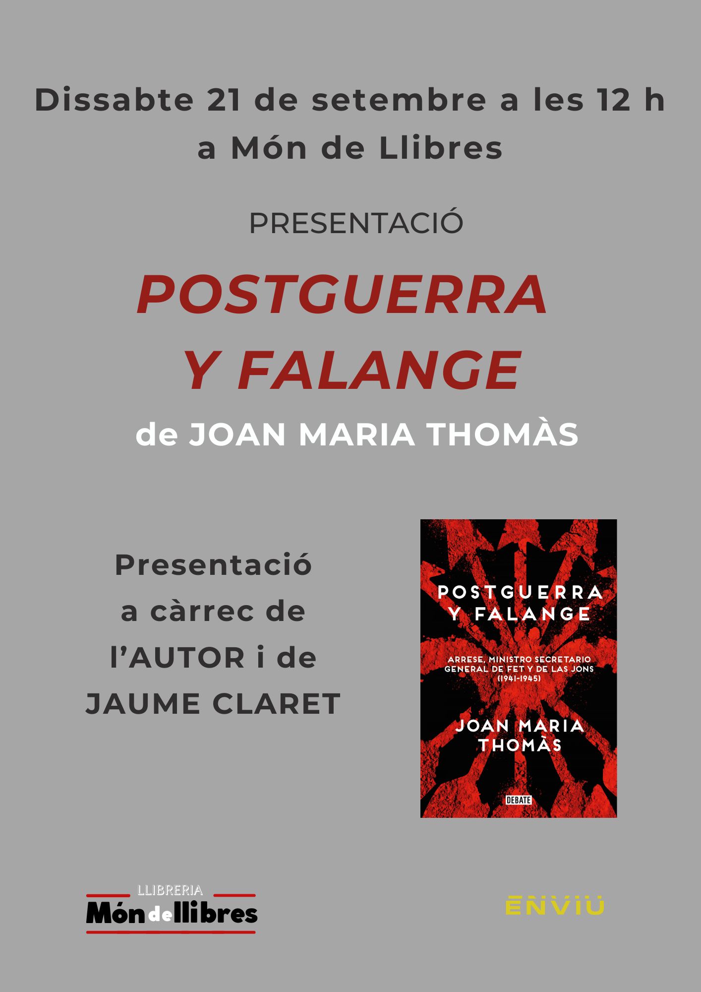 Joan Maria Thomàs Andreu (Palma, 1953) és catedràtic d’Història Contemporània a la Universitat Rovira i Virgili. Demà serà a Manacor per presentar-hi Postguerra y falange, un llibre escrit a partir de l’arxiu personal del ministre falangista Arrese.